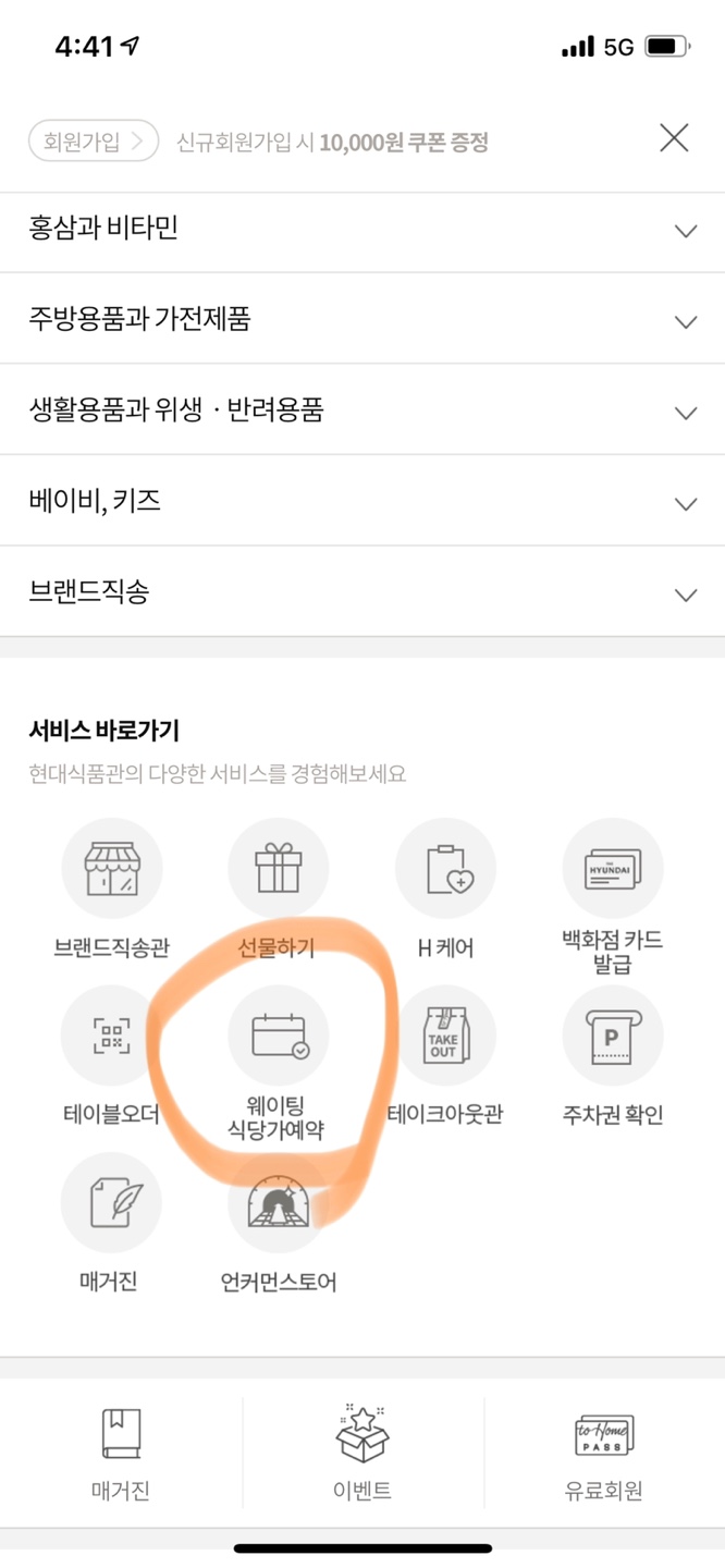 현대식품관 앱을 다운받은 후