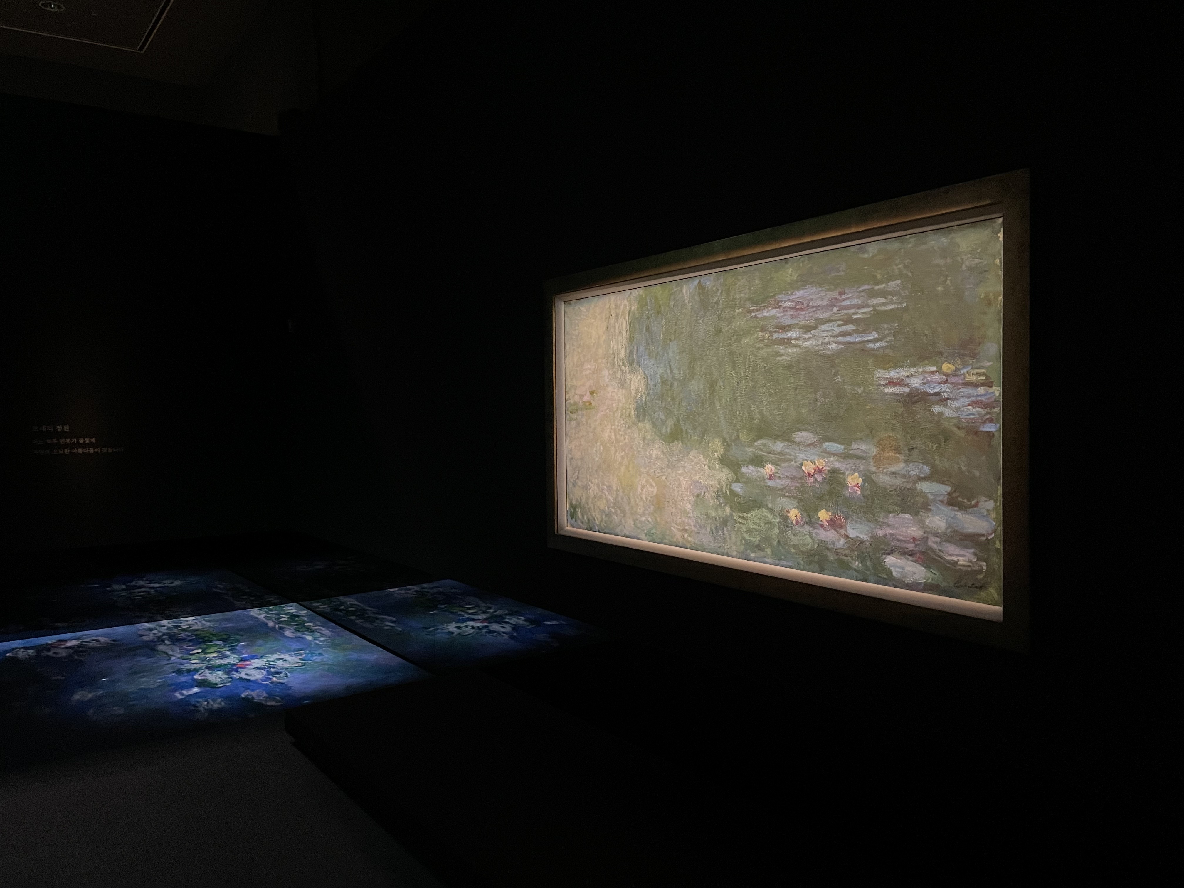 눈이 거의 멀어 흐릿한 사물을 그대로 그린 인상주의 작가 모네의 말년작 <수련이 있는 연못>은 이번 전시의 하이라이트이다.