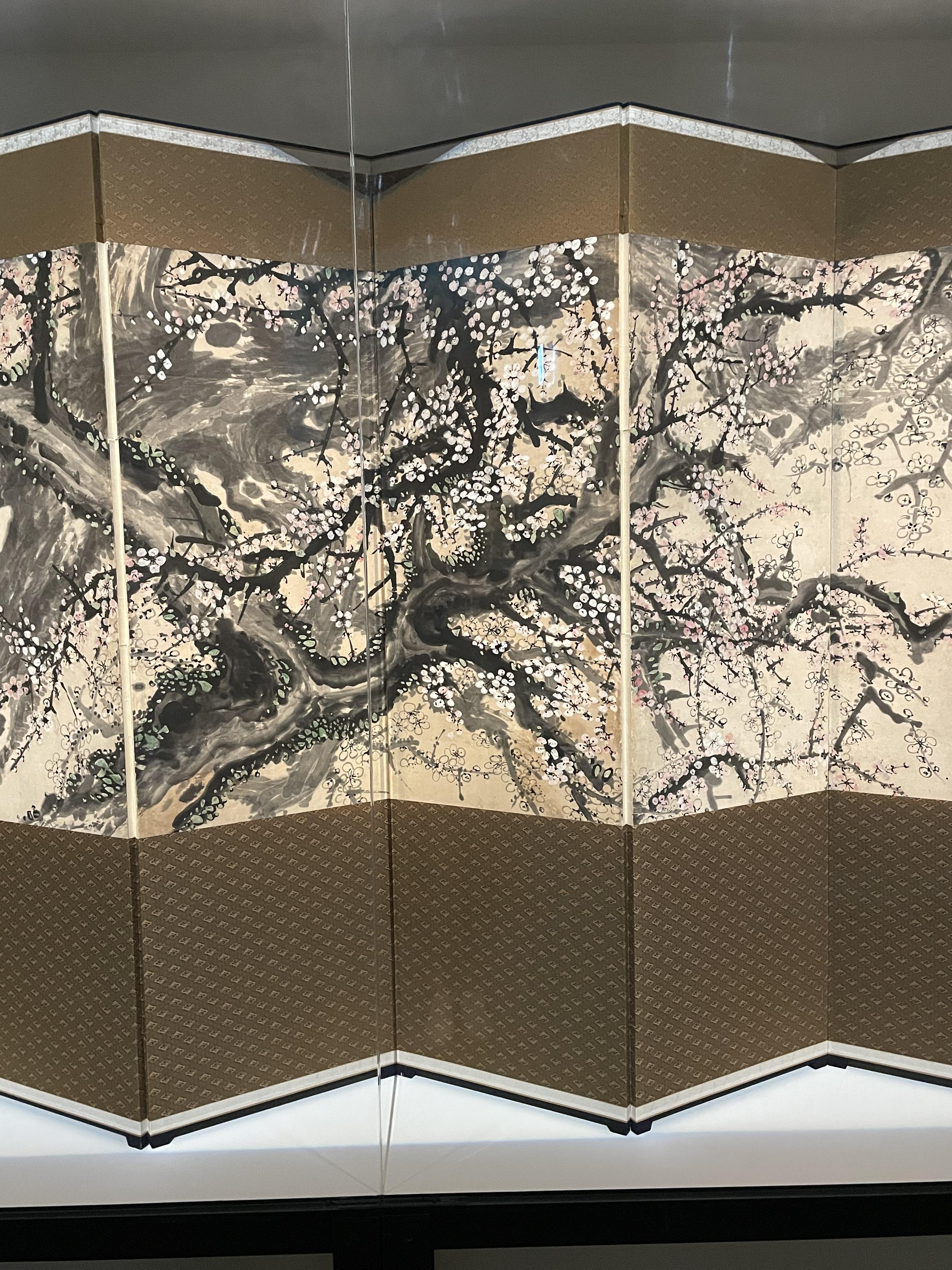 늙은 매화나무 두 그루가 양쪽으로 뻗어 있는 역동적인 모습을 그린 가지의 역동성과 구도가 멋지다. 장승업 특유의 호쾌한 붓놀림과 매화에 대한 디테일한 묘사가 아름다운 병풍이다.