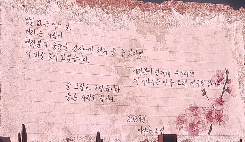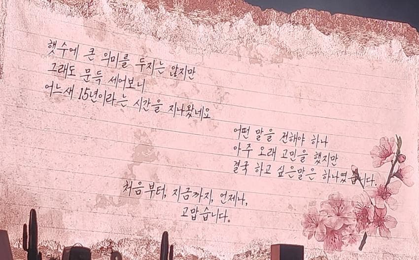 공연 중 화면에 이석훈이 친필 편지처럼 쓴 글귀는 가장 찡한 애정표현이었다.