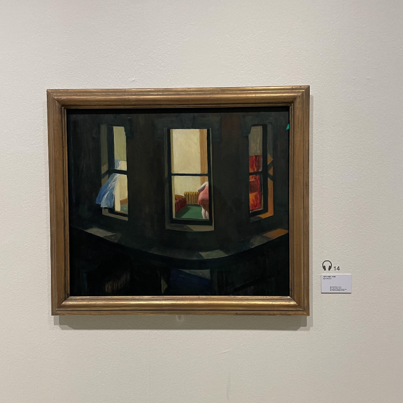 호퍼는 뉴욕에서 대도시의 풍경과 도시인의 삶을 관찰하여 담아냈는데 창문을 통해 밖에서 실내를 들여다보는 관찰자적 시선을 자주 드러낸다. 극장, 레스토랑 등에서 만난 인물의 뒷모습과 막간의 풍경을 담아 고독하고 단절된 느낌을 자아낸다.