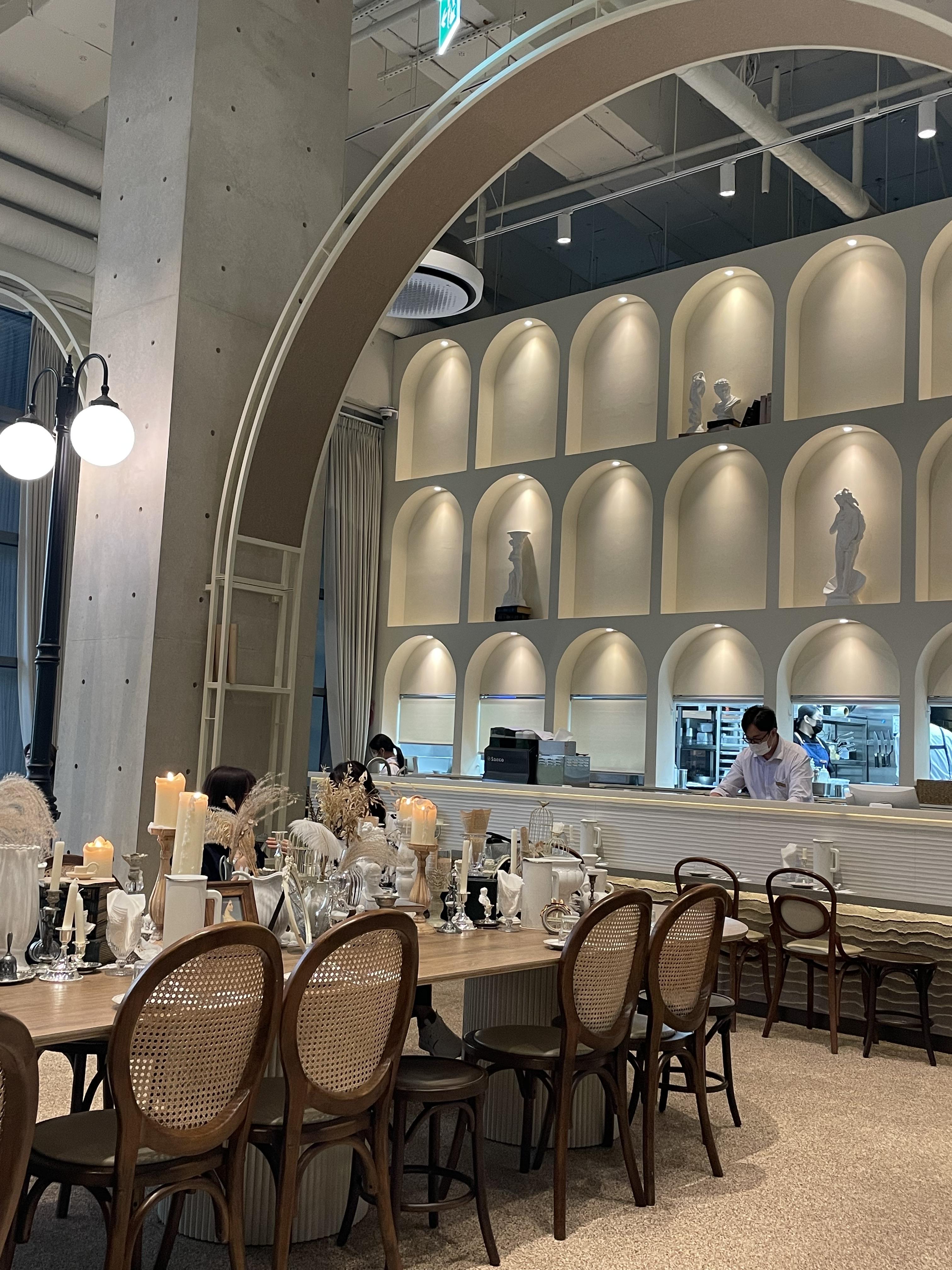 높은 층고의 실내를 고풍스럽게 장식한 분위기가 마치 로마에 온듯한 착각를 일으키는 완벽한 이탈리안 레스토랑.