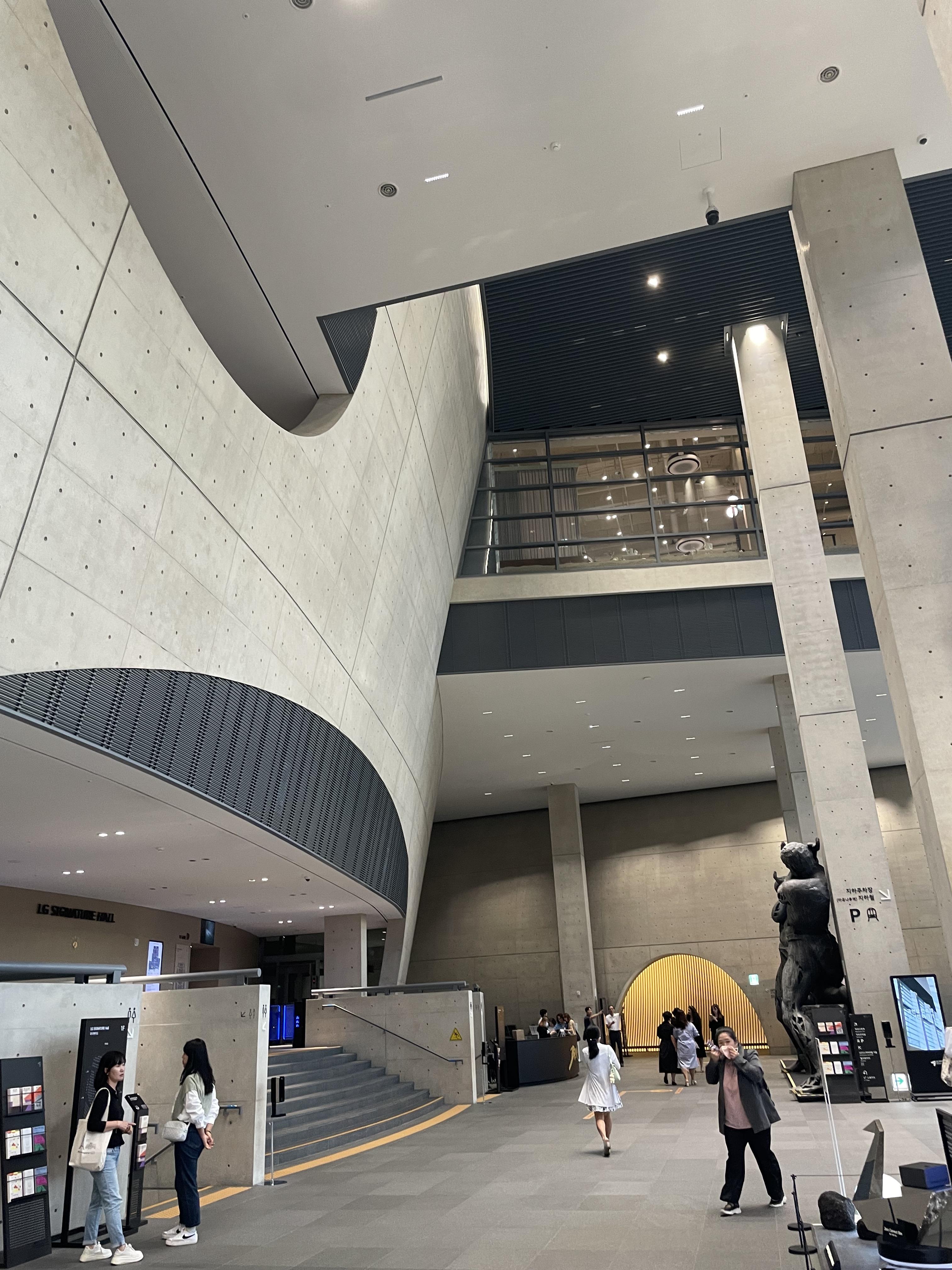 ‘튜브, 게이트 아크, 스텝 아트리움’이라고 하는 3가지 건축 컨셉을 갖고 있는데 특히, 중앙로비의 '게이트 아크'라는 곡선의 기울어진 디자인이 웅장한게 인상적이었다. 정말 아름답다고 할만한 건축물이다.