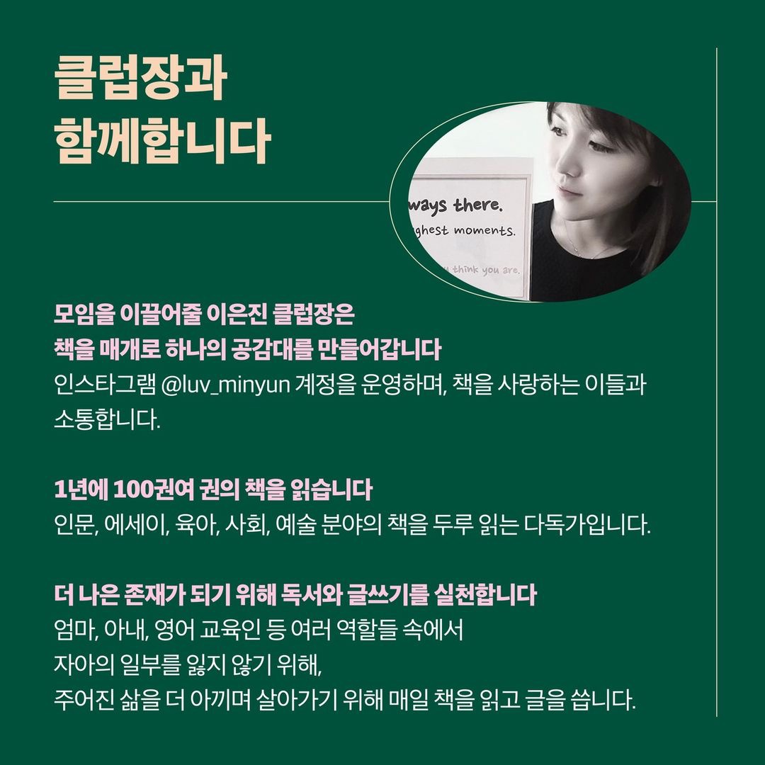 사실은 지적인 매력의 다독가 클럽장 은진 님 @luv_minyun 을 인스타로 알게되어 자연스럽게 신청하게 되었다.