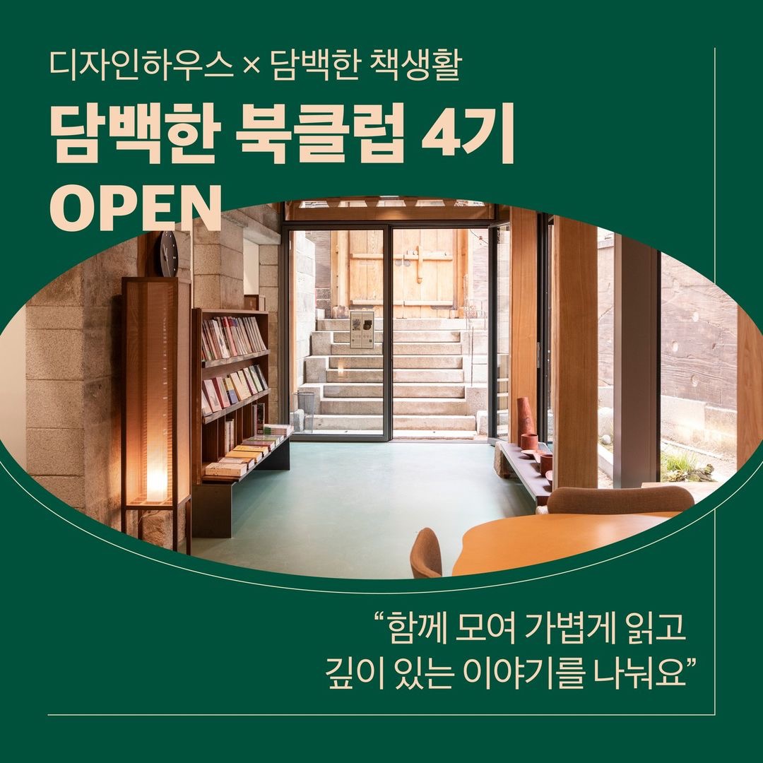 디자인하우스에서 운영하는 새로은 북클럽 '담백한 북클럽' 4기에 가입했다. 취향에 맞는 다양한 연령의 사람들과 북촌 한옥 공간에서 향내 가득한 차를 마시며 책을 매개로 문화예술과 인생을 나누는 것이 북클럽의 매력이다. 이 모임은 디자인하우스에서 운영하는 한옥 갤러리인 지우헌에서 진행한다는 것이 매력적으로 다가왔다. 물론 요즘 혼자 책읽기가 너무 힘들어서이기도 하다. (덕질의 부작용인지 유튜브의 폐혜인지 ㅜ)