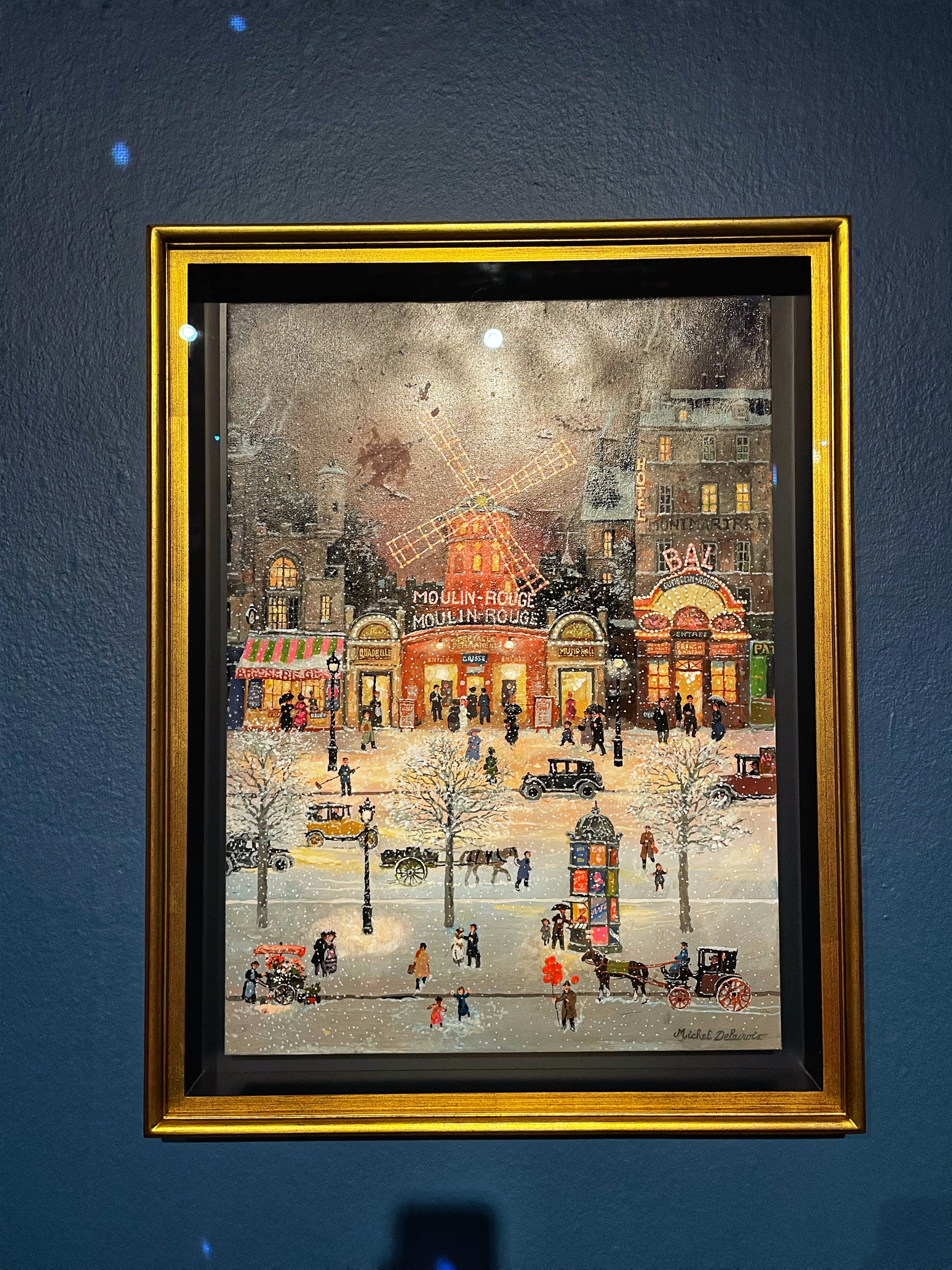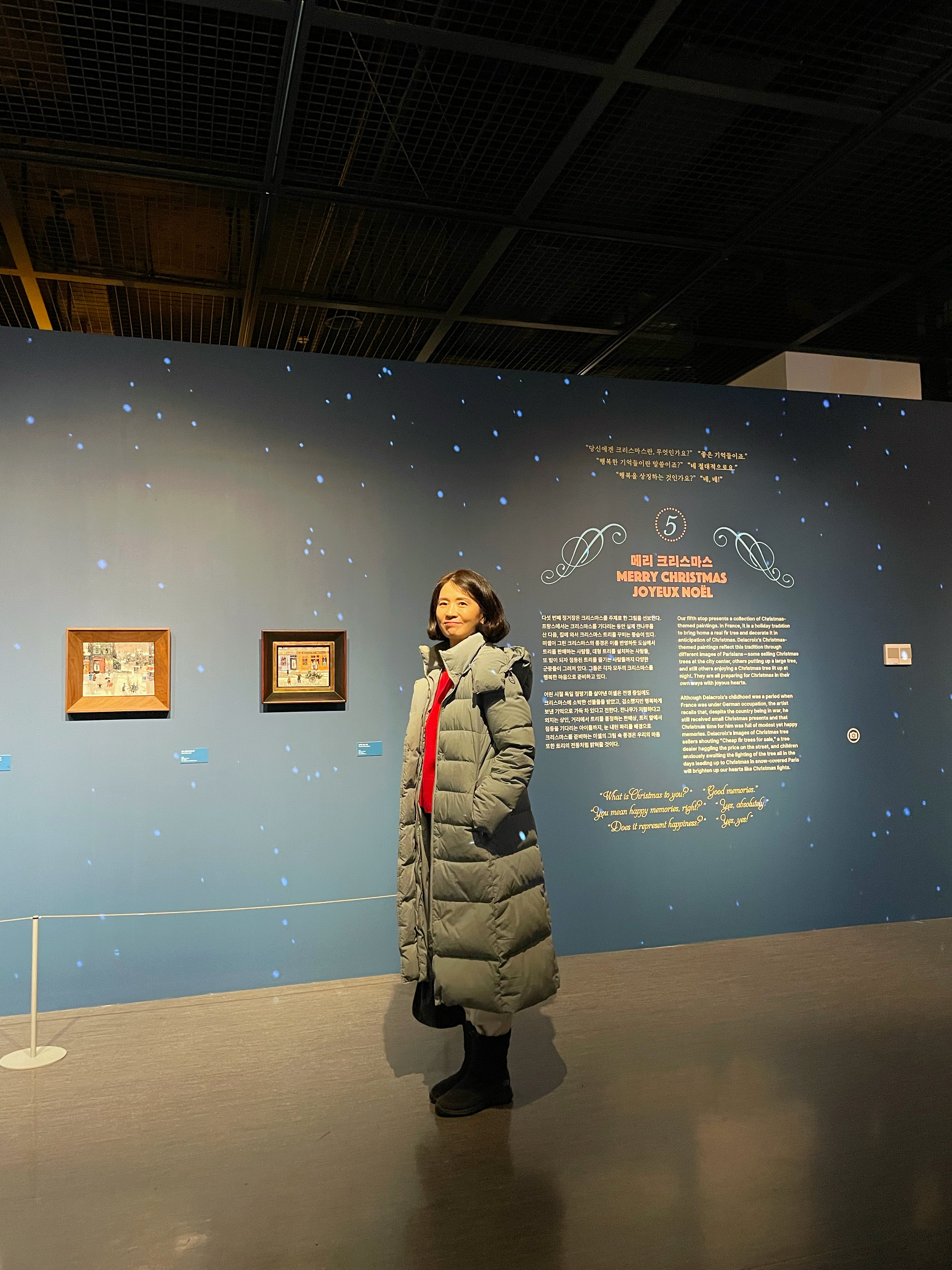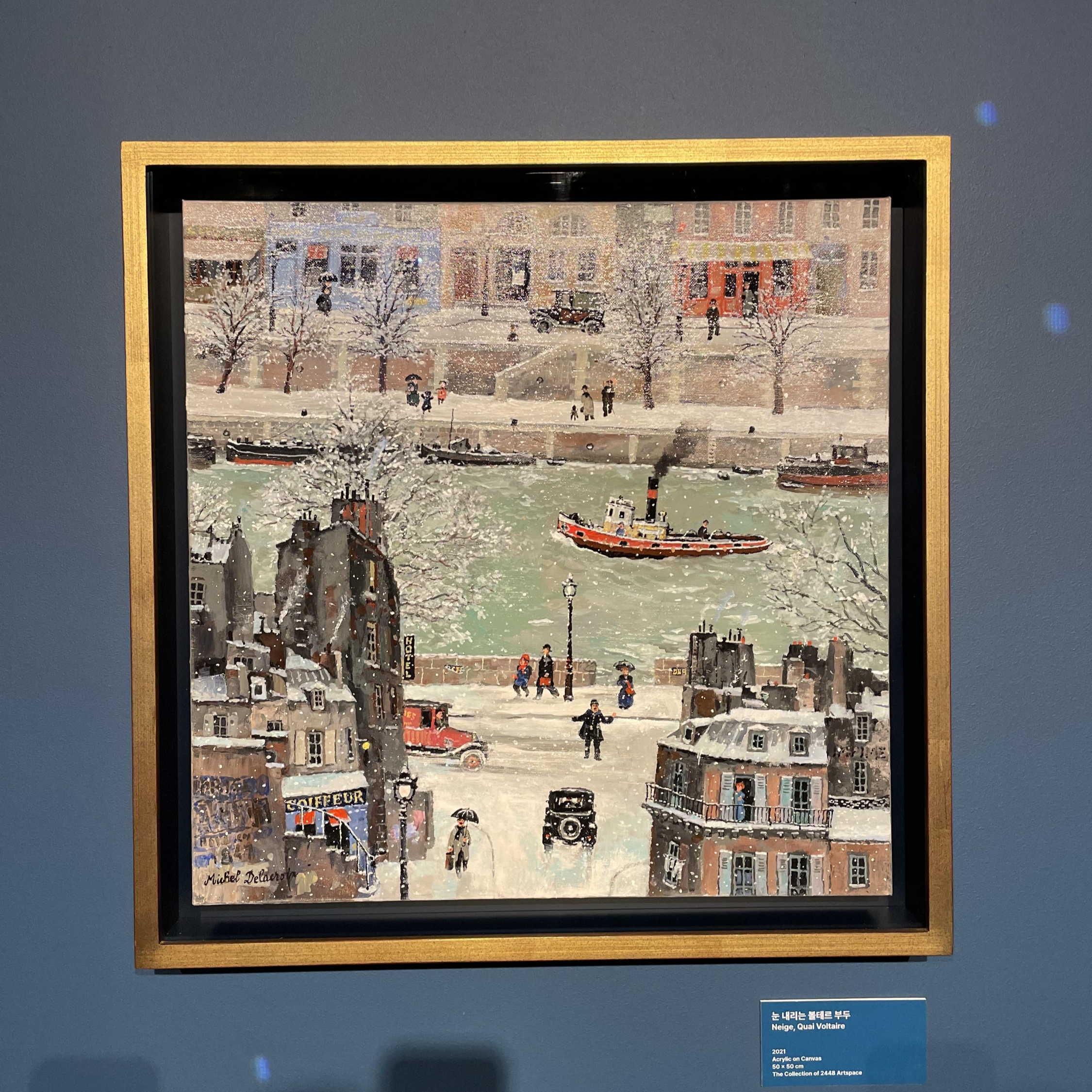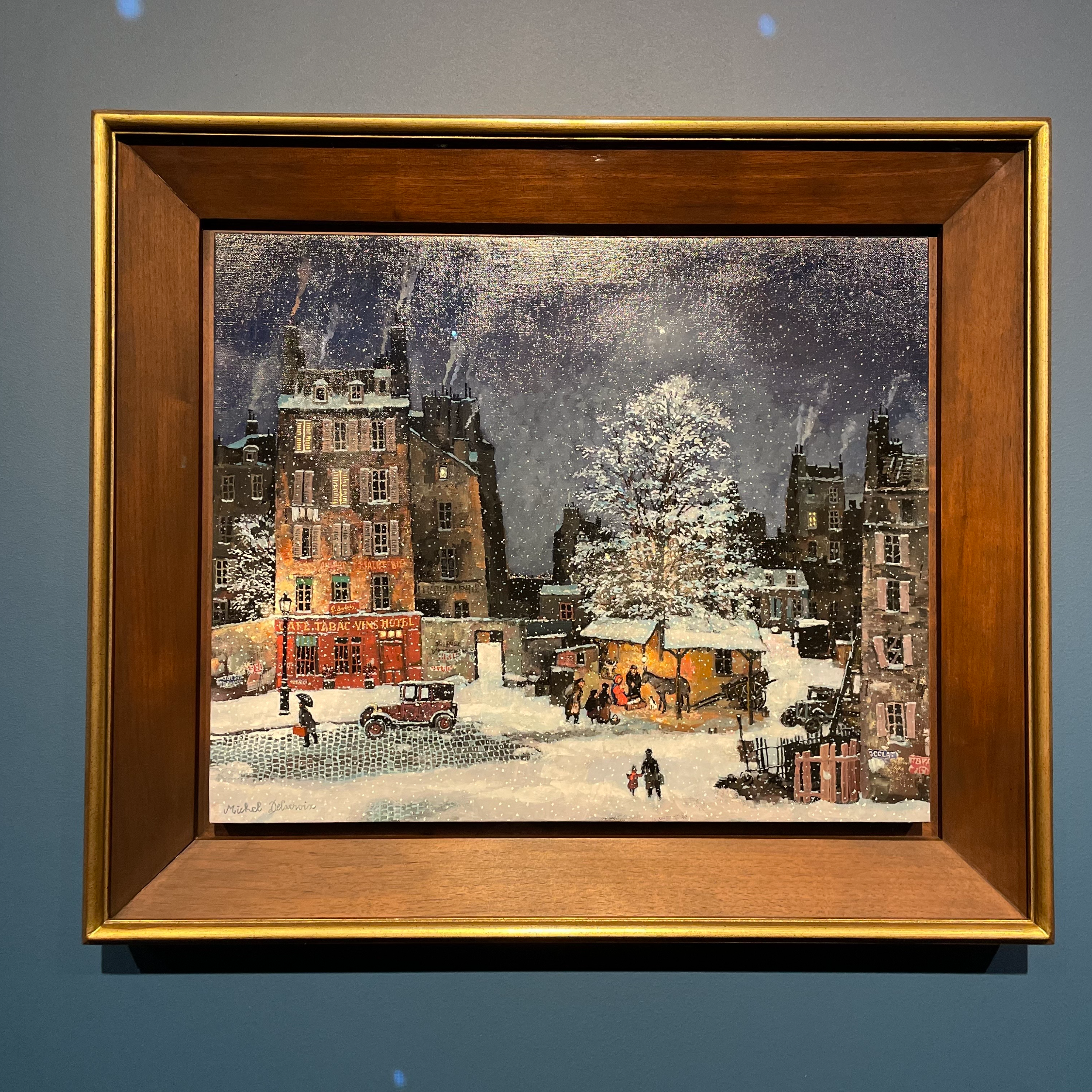 주제는 그가 사랑한 도시 ‘파리’와 ‘벨 에포크’(1890년대 벨 에포크 고유명사가 아닌, 프랑스어 원어 그대로 ‘아름다운 시절’을 의미)다. 유년시절 1930~40년대 자신의 기억 속 파리의 낭만적인 풍경을 아이가 그린 것 같은 '나이브 아트' 기법으로 순수하고 포근하고 따뜻한 크리스마스 분위기를 느낄 수 있어 좋았다. 지금은 없는 굴뚝과 기차의 연기들과 마차들, 가스등, 빨래를 너는 풍경 등이 정겨운 추억을 되새겨준다. 역시 어린 시절의 행복한 기억은 평생의 자산이 되는가보다.