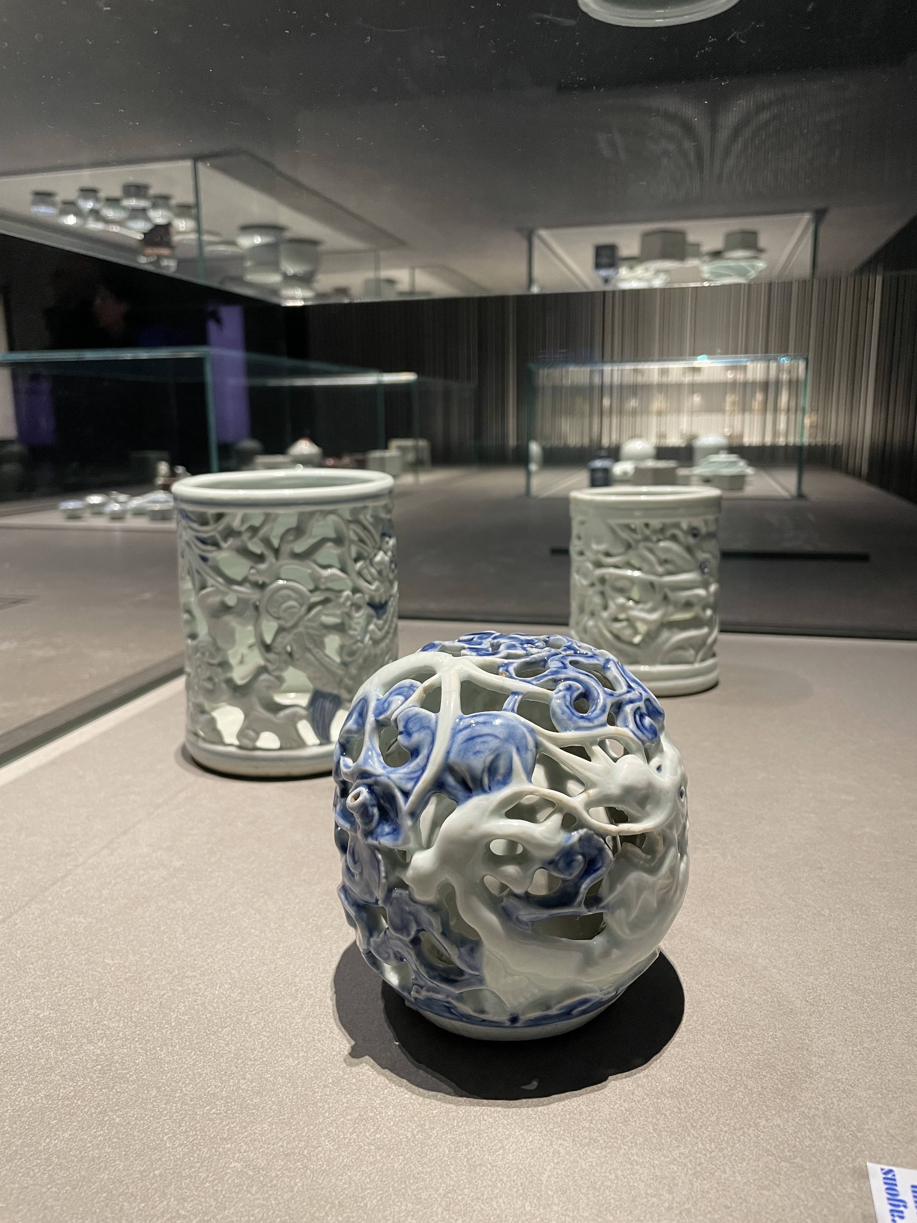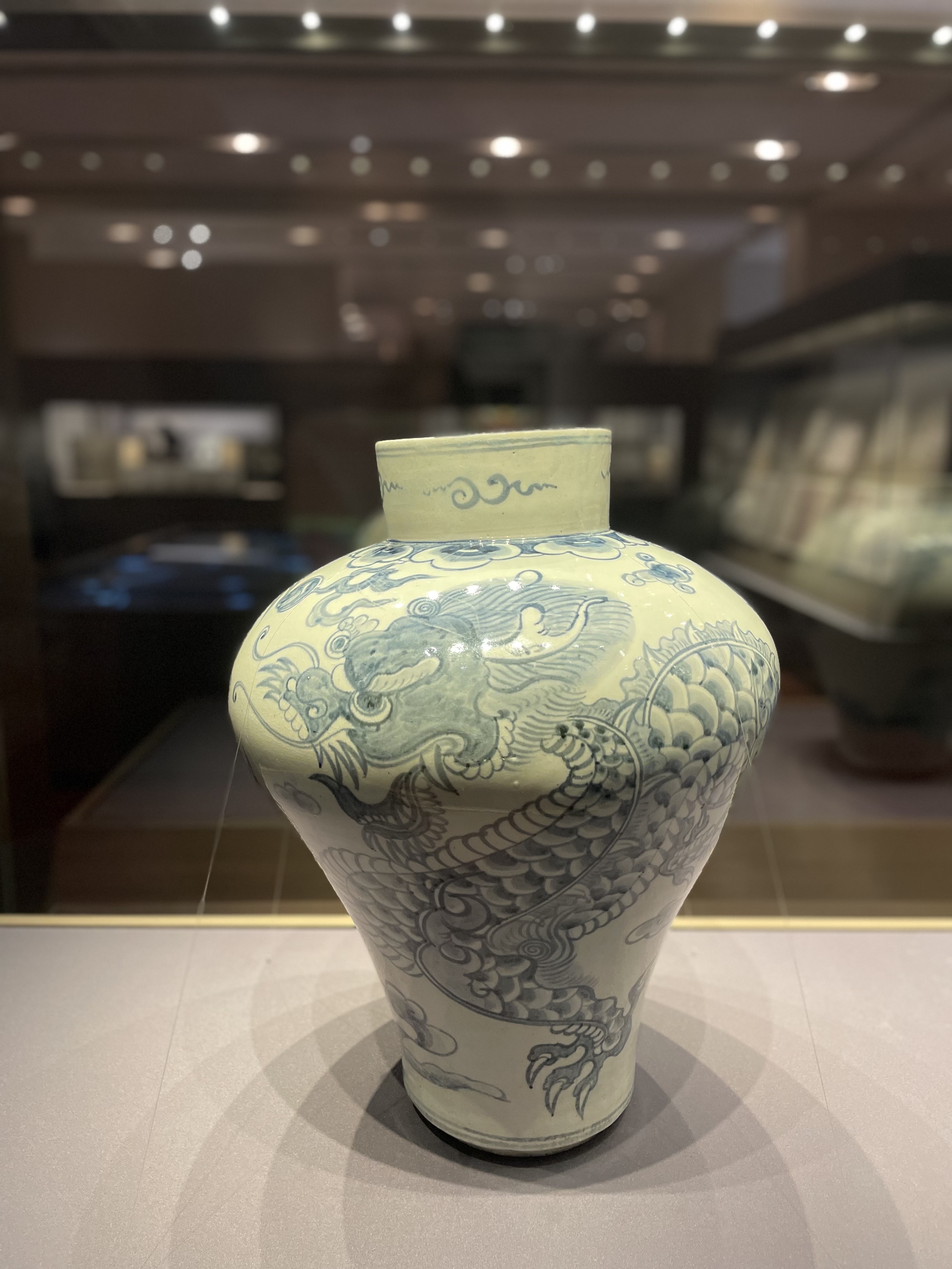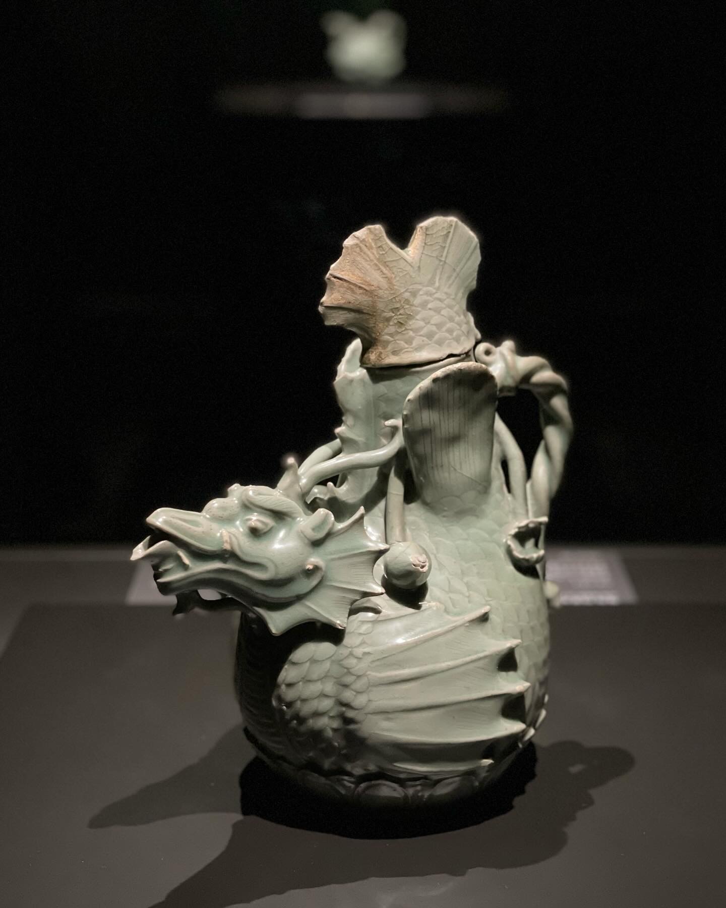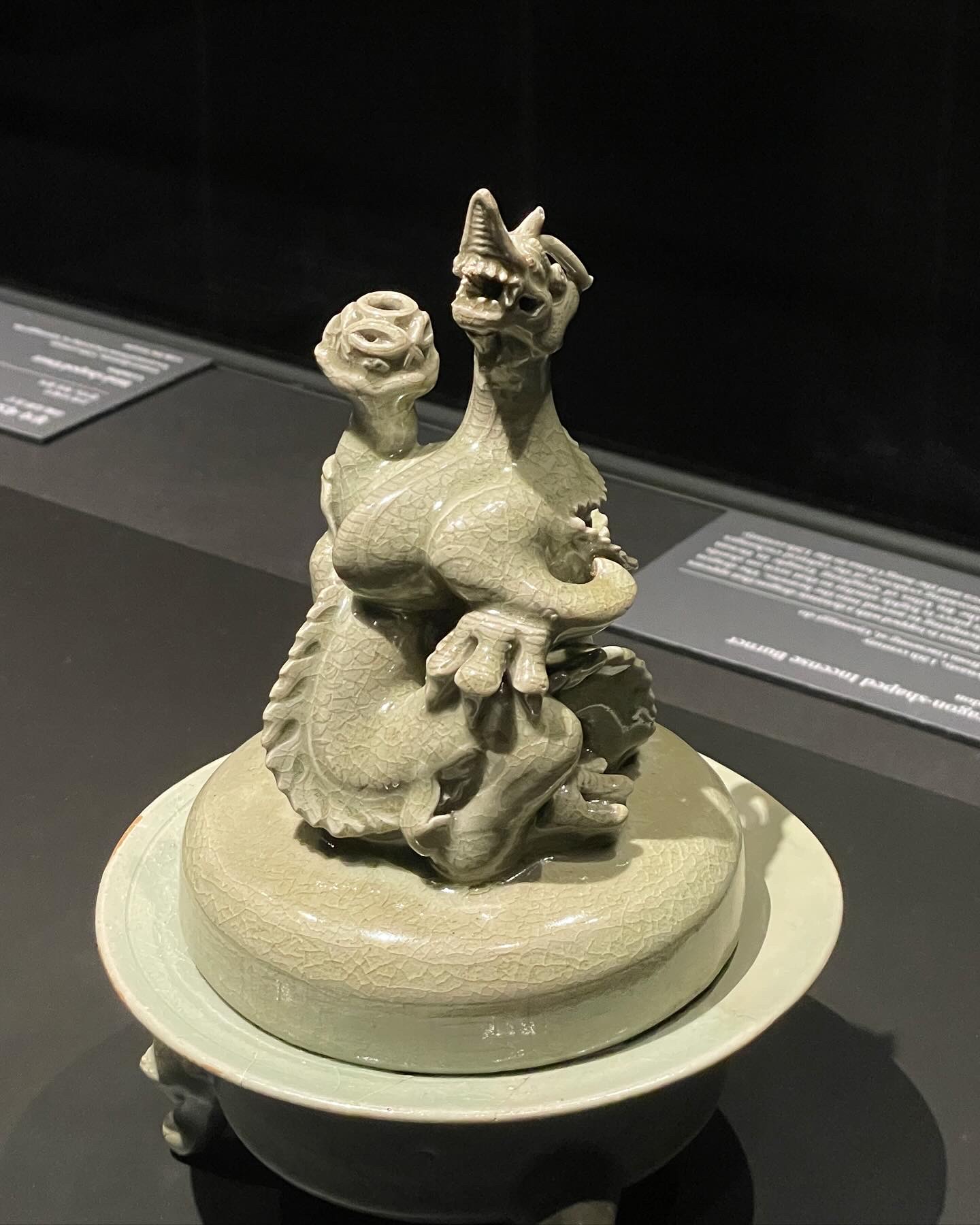 이날 가장 인상적이었던 구름용무늬 연적(벼루에 먹을 갈 때 쓸 물을 담아두는 그릇). 연적 바깥에 구름과 용을 조각했는데 용의 눈썹과 갈기, 비늘, 이빨까지 입체적으로 새겨 입체적이다. 푸른색도 다른 것보다 더 푸른 안료가 용의 푸른 눈동자를 표현해 장식품으로 아주 멋지다.