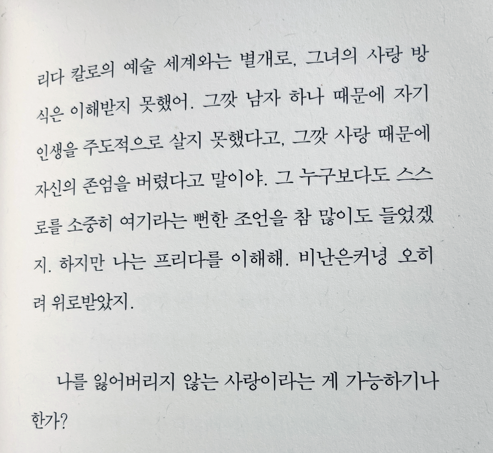 "나를 잃어버리지 않는 사랑이라는 게 가능하기나 한가?"