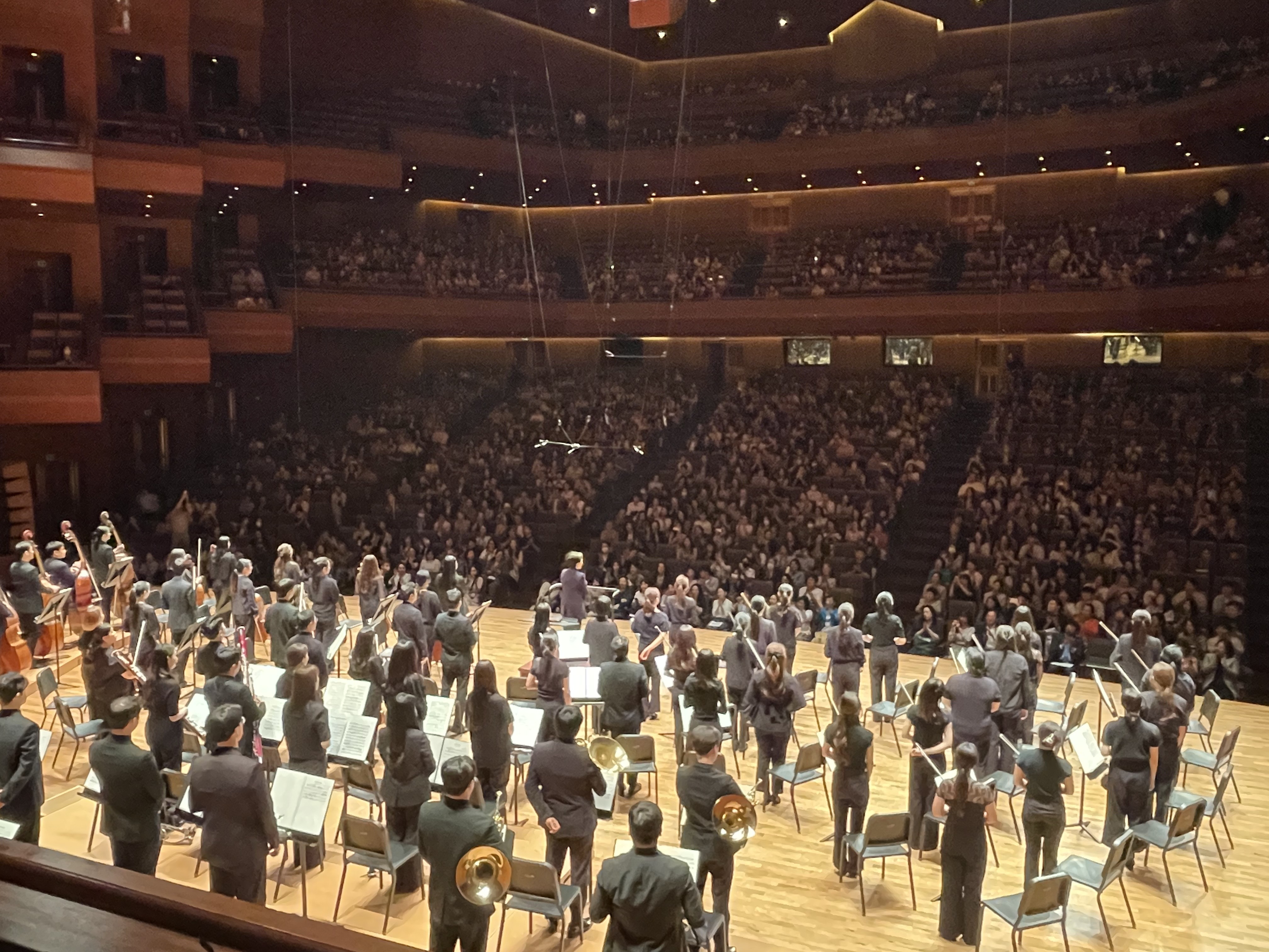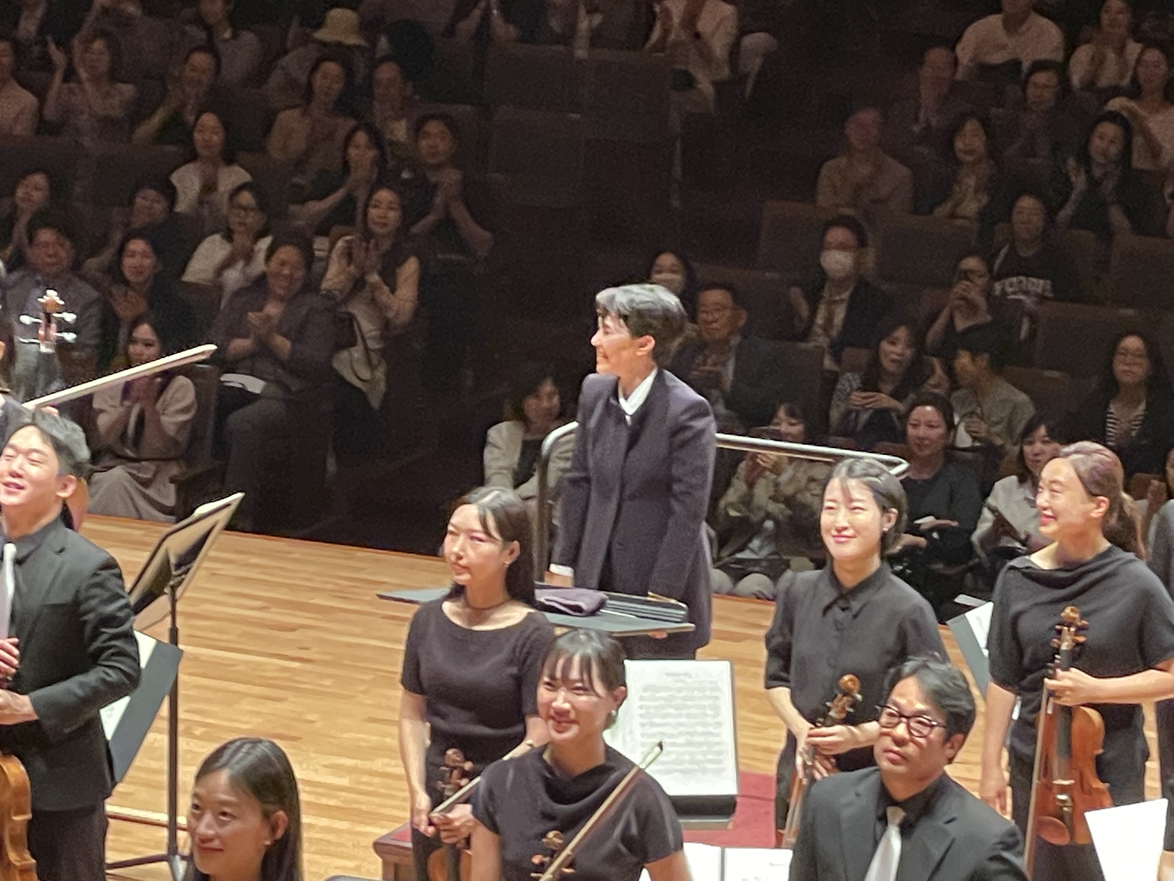 여자경의 지휘자의 카리스마 넘치는 표정을 볼 수 있는 합창석은 탁월한 선택이었다. 합창석에서 들어보니 오케스트라를 전면에서 관람할 때보다 현악기의 소리는 약한 대신 관현악이 더 가까이 들려 웅장한 음향을 느낄 수 있었다. 여자경 마에는 군더더기 없이 깔끔하고 눈을 맞추며 섬세한 손짓으로 강약을 충분히 주면서도 표정에서는 여유가 넘쳤다.