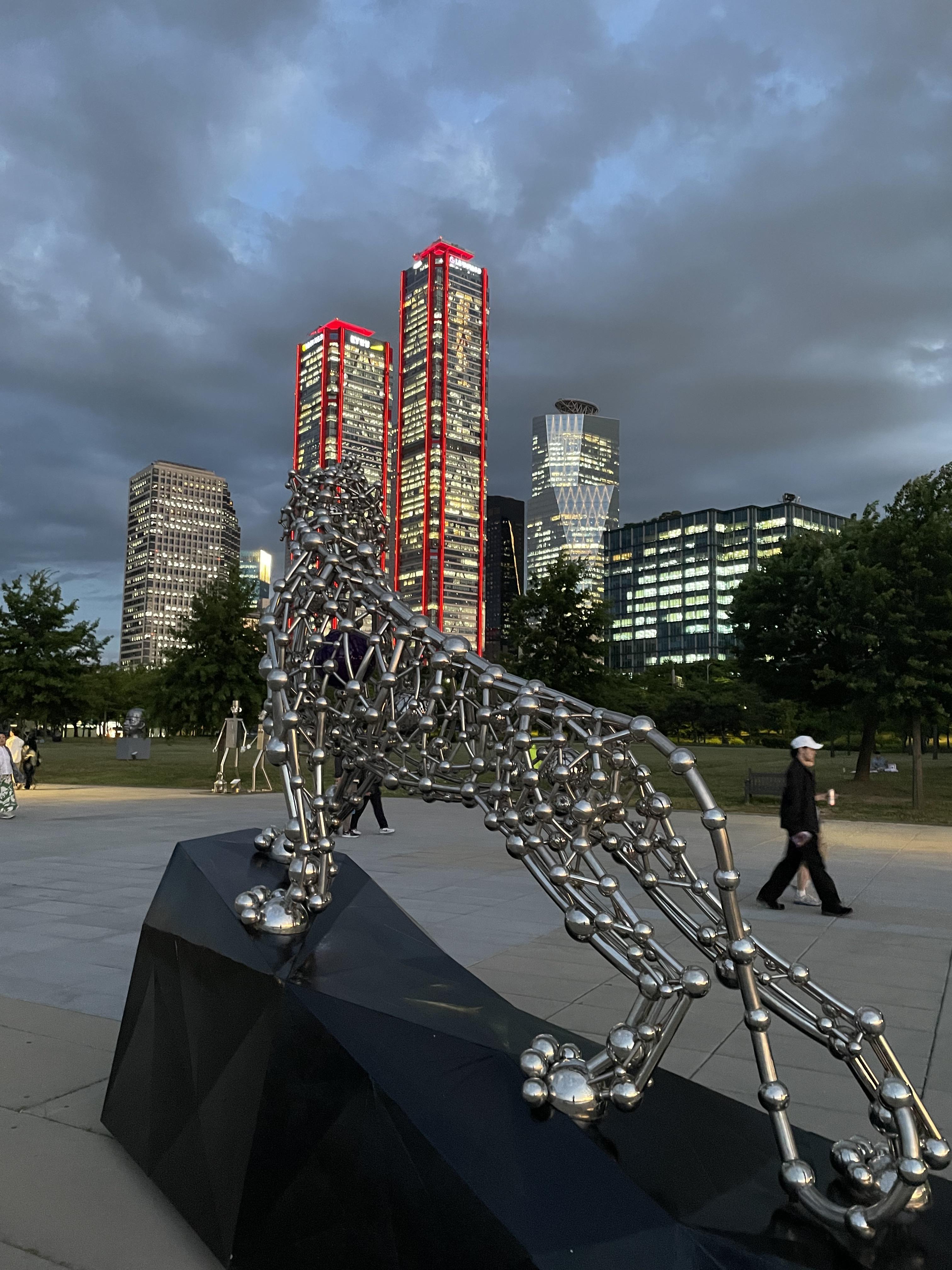 여의나루 한강공원이 6월부터 멋진 야외 조각공원으로 변신했다. 탁 트인 야외에서 한강과 마천루를 배경으로 보는 조각 작품이 말그대로 예술이다. 지붕 없는 미술관이 따로 없다.