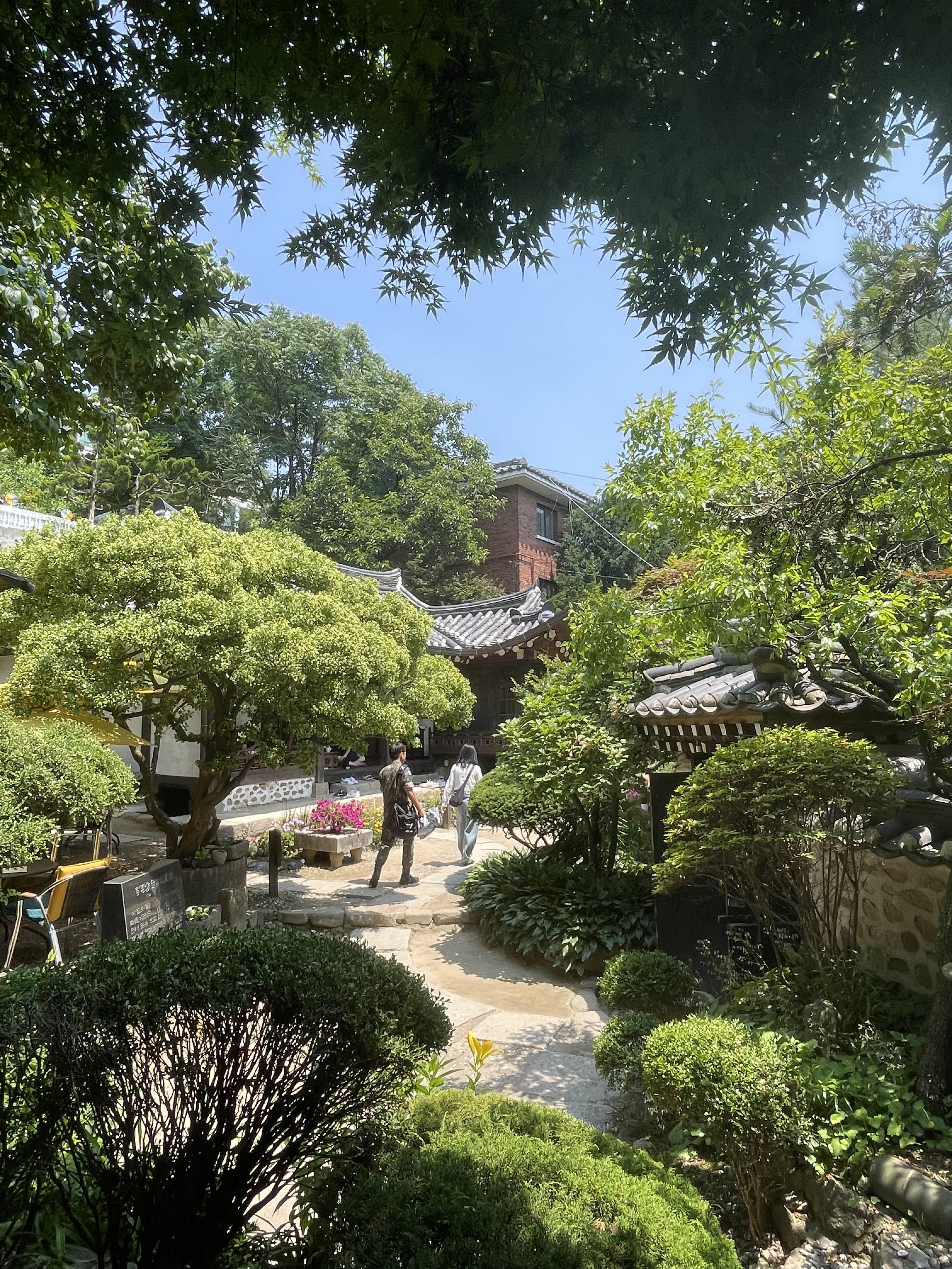 고즈넉한 한옥 마당 파라솔에 앉아 푸릇푸릇한 정원을 보면서 운치있게 가야금 소리를 들으며 산들 바람을 맞으며 차를 한잔 하기에 참 좋은 날씨였다. 올해도 못가나 했는데 너무 더워지기 전에 다녀와서 정말 다행이다.