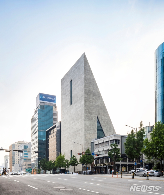 2021년 9월 준공을 마친 송은 아트스페이스는 창담동의 랜드마크라 할 정도로 독특한 외관으로 눈길을 사로잡는다.