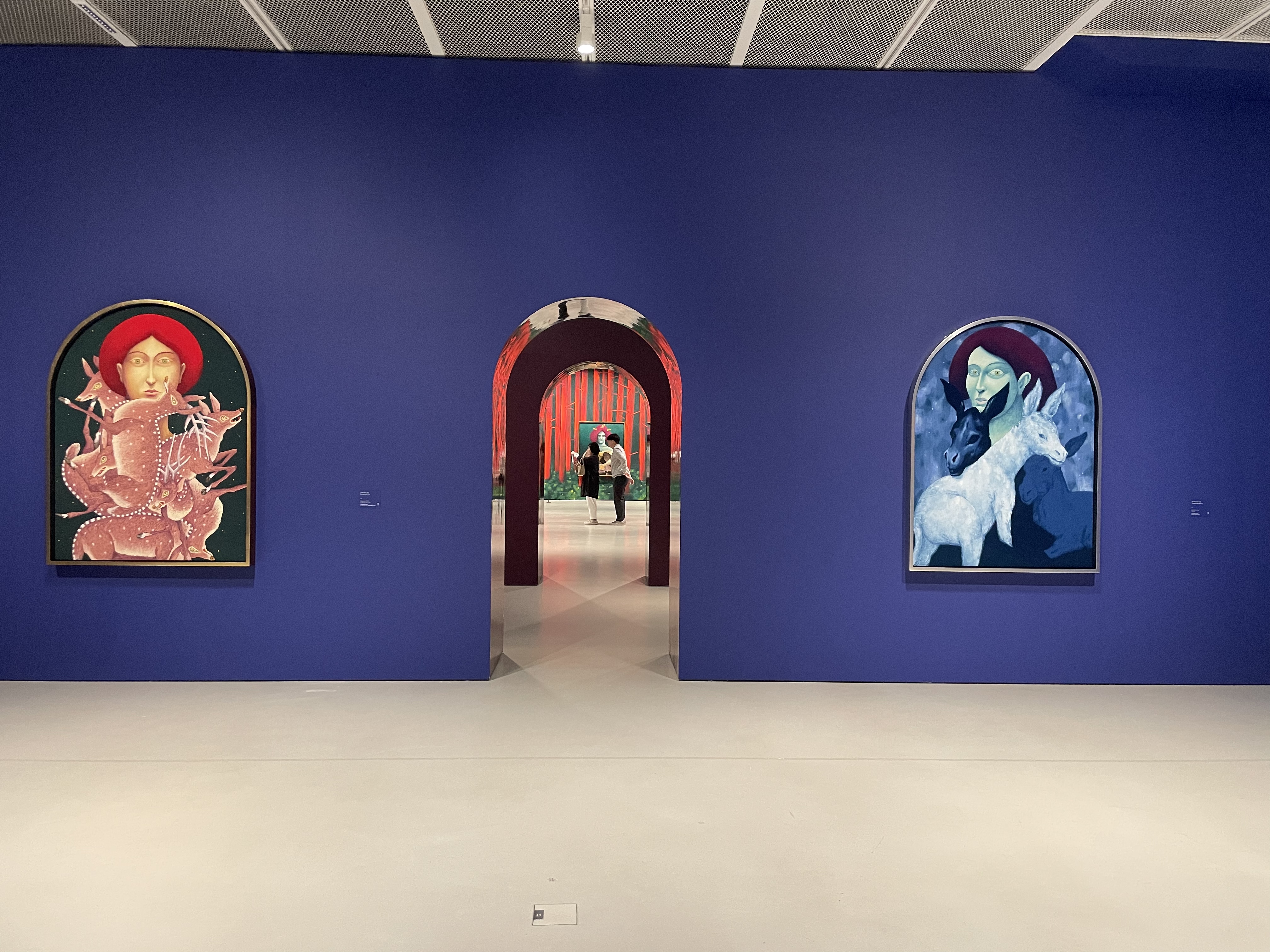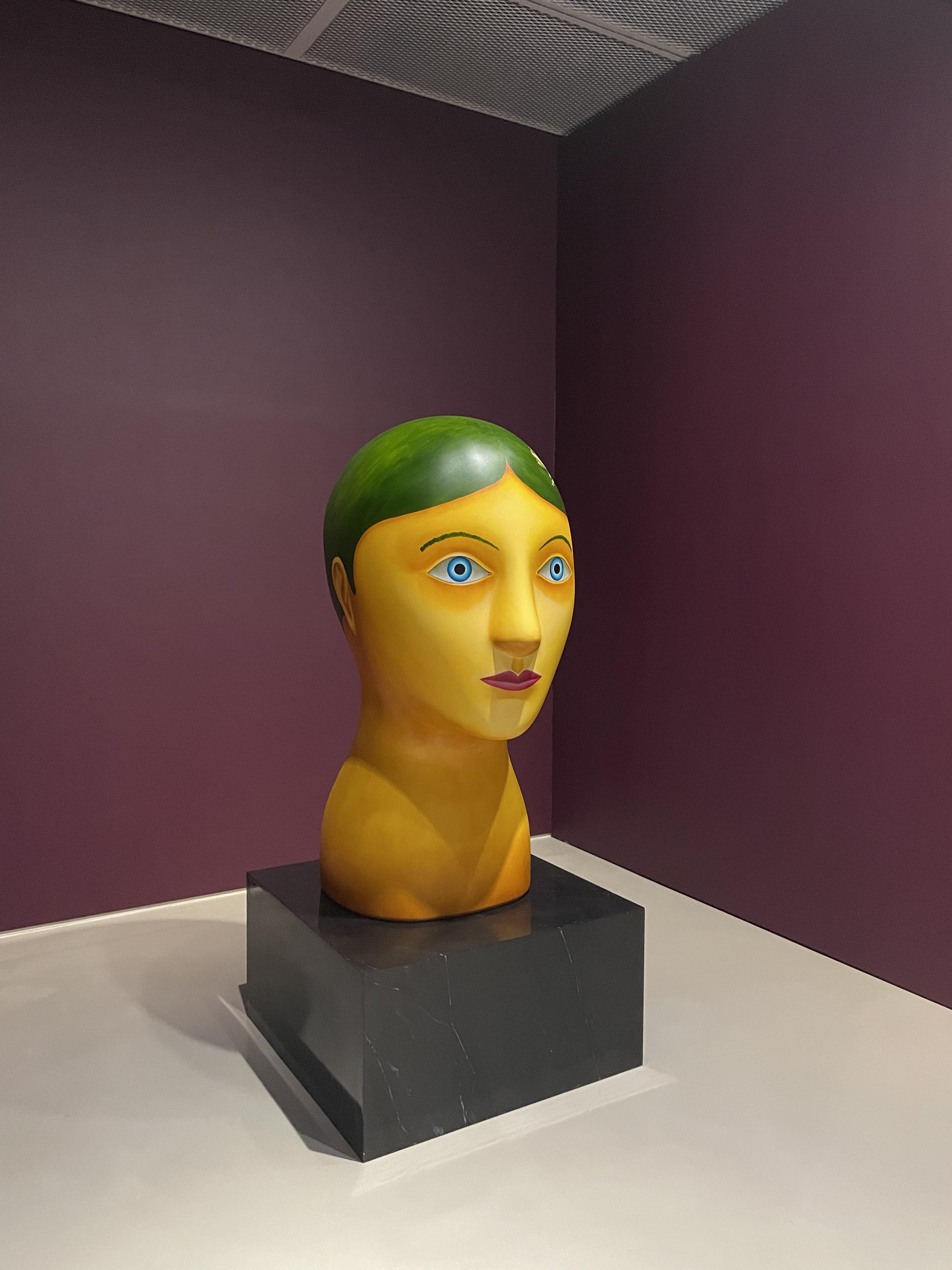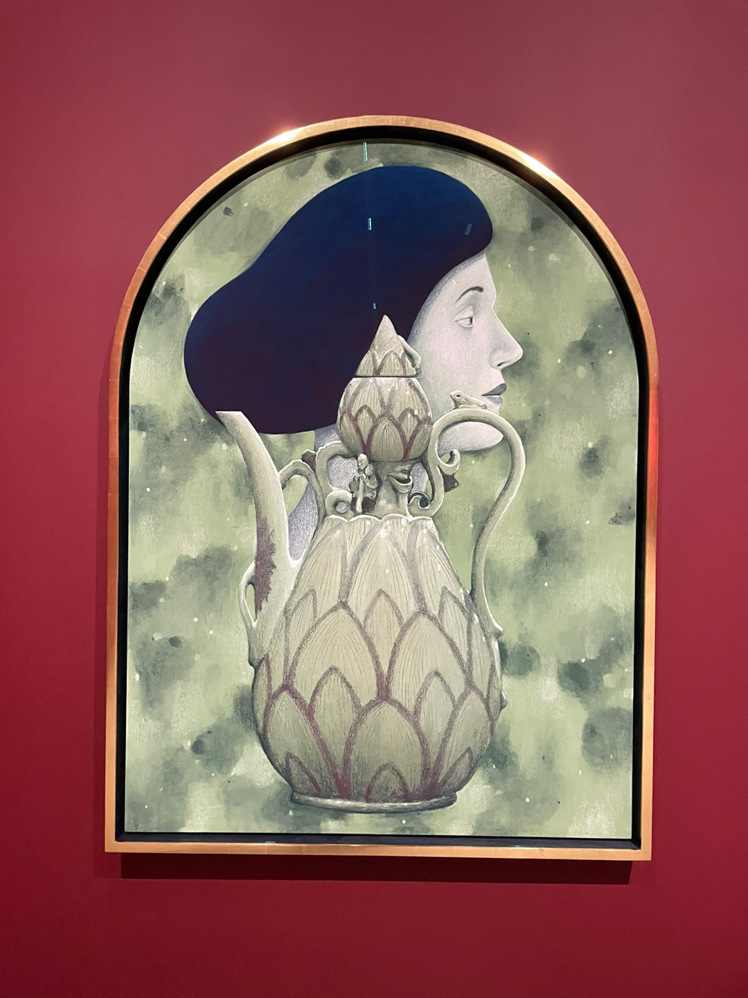 청자가 있는 초상이나 복숭아가 있는 초상, 보라색 얼굴 등 다소 기괴한 색감이 눈길을 끈다.