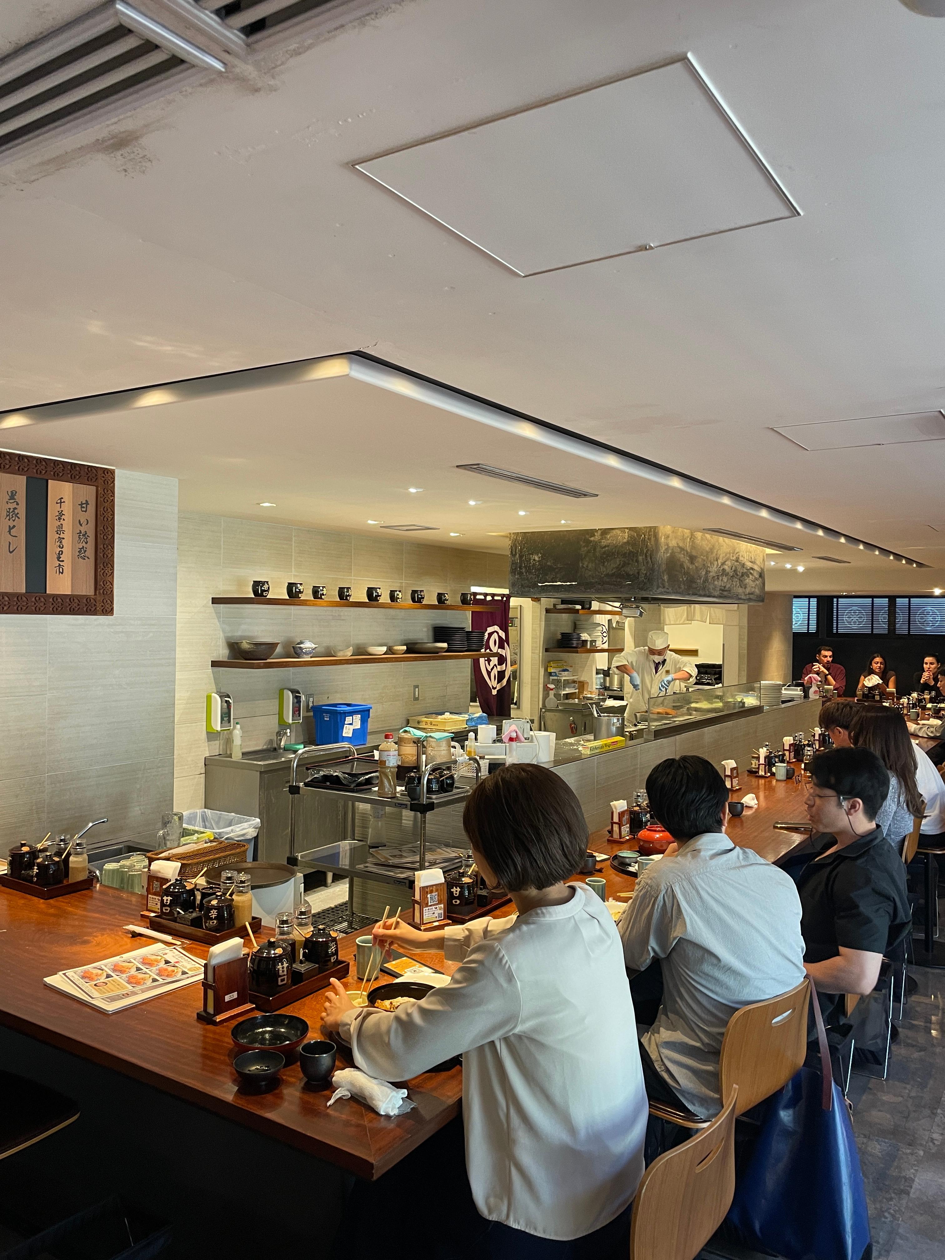 도쿄의 샹젤리제라 불리는 오모테산도의 화려한 골목 안쪽에서 발견한 보석같은 돈카츠 맛집. 검은색 건물 밖에서 10분 정도 줄을 서서 대기 한 후 입장하면 내부에서 직원이 미리 주문을 받아 준다. 유니폼을 입은 직원들의 응대가 이미 맛집 포스.