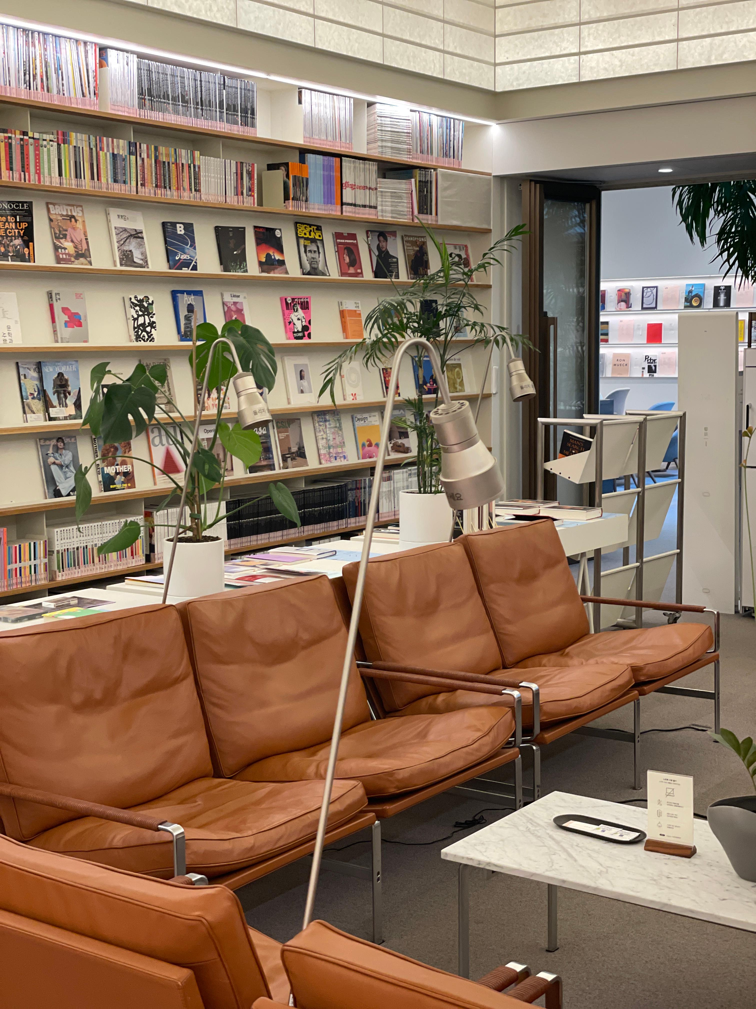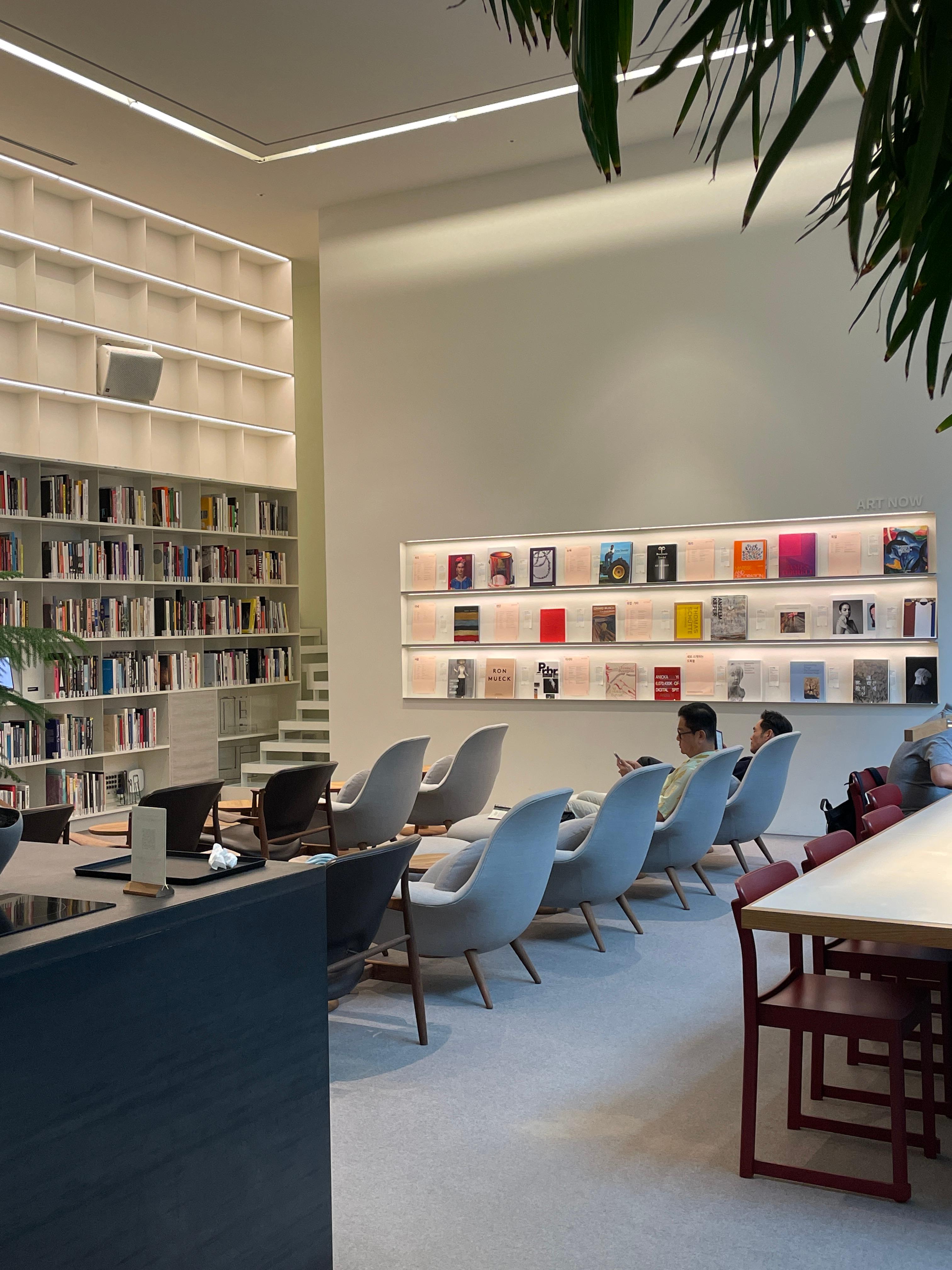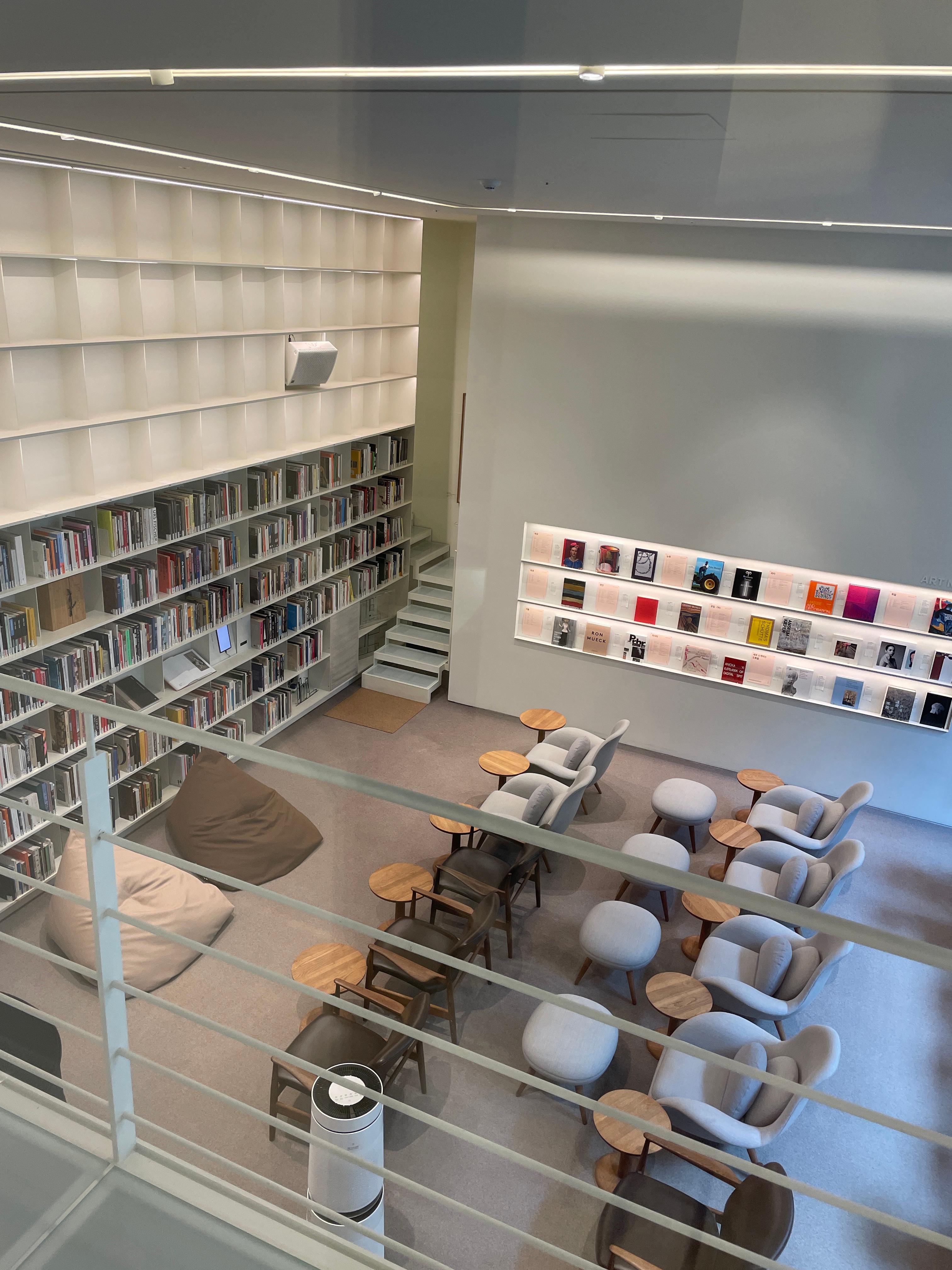 좋은 향, 정원과 식물, 안락하고 아름다운 디자인 체어들, 건축가의 의도로 만들어진 정갈한 디테일을 보여주는 내부 인테리어, 미술관에서나 만날 수 있는 그림들과 함께하는 열람실의 풍경이 마음 편안한 공간이다.