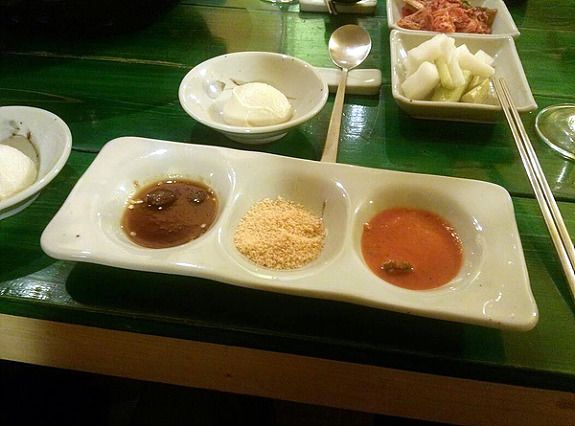 도착해 들어가보니 3색 양념장(간장, 콩가루, 매운장), 김치와 무 반찬이 다소곳이 놓여있다. 아이스크림 같이 생신 에피타이저는 뭔가하고 물어보니 두부란다. 두부를 그리 즐기지 않는 나도 퍽퍽한 맛 없이 부드럽게 입가심을 했다.