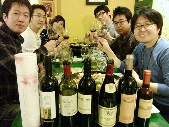 깔끔한 맛의 피노누아부터 칠레에서 출장길에 사온 와인, 일본의 사쿠라 와인까지 다양한 와인이 한자리에 모였다. 혼자선 한가지 와인밖에 못먹지만 여럿이면 이것저것 다양한 와인을 맛볼 수 있다는 것이 와인모임의 매력이란다. 이집은 1인당 5천원의 콜키지 차지(Corkage Charge)를 받는다.