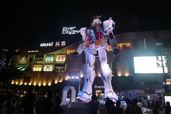 다이버시티 도쿄플라자 남쪽광장에 위치한 18m 크기의 건담도 세계적인 명물로 많은 사람들의 관심을 받고 있다. 낮보다는 조명이 켜진 밤에 더욱 그 위용이 돋보이는 건담을 보러 일부러 시간 맞춰 다이버 시티를 찾는 사람도 많았다. 실물 크기로 섬세하게 재현된 건담 뒤로는 건담의 명장면을 상영하고 있었고, 앞쪽의 기념품 코너에서는 작은 미니어쳐를 구입할 수 있었다.