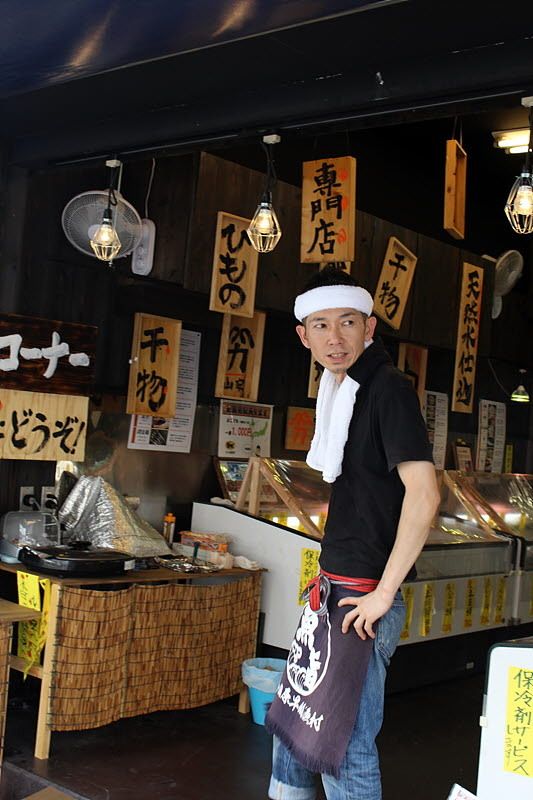 생선을 경매하고 도매하는 장내 시장과 소매와 맛집들이 있는 장외 시장으로 나눠지는데 장외시장은 외국인들이 견학하기 좋은 곳이라 관광객이 많이 보인다. 요렇게 간지나는 생선 장수 아저씨들, 머릿수건 하나만으로도 참 포토제닉하다.