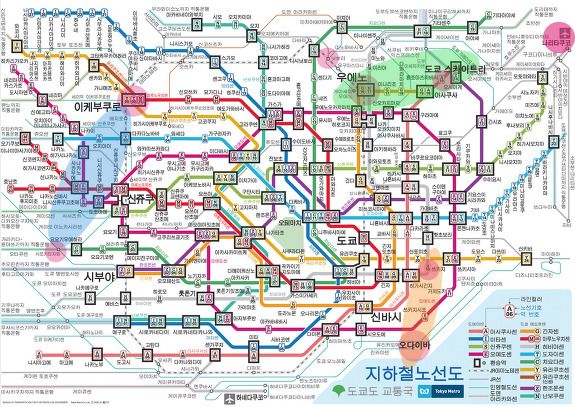가장 먼저 지하철 노선을 분석하는 것이 또 하나의 과제였다. 도쿄는 총 14개 노선의 전철과 지하철(지상을 달리는 것은 전철, 지하를 달리는 것은 지하철)이 거미줄처럼 얽혀 있지만 노선마다 운영 회사가 다르기 때문에 환승할 때마다 티켓을 다시 끊거나 연결 구간 티켓을 구매해야 한다.