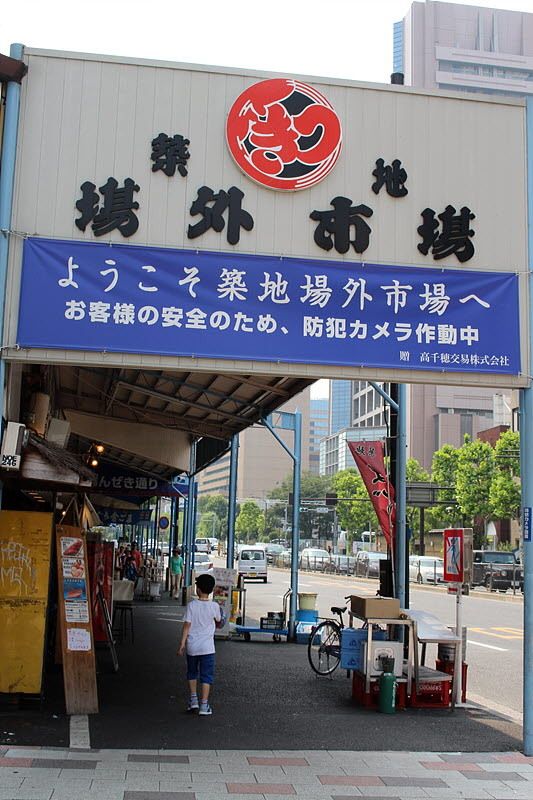 지하철을 타고 오에도선 츠키지시장역에서 내려 A1이나 A2 1 방면 출구로 나와서 5분 정도 걸어가면 시장 입구가 나온다. 정오의 뙤약볕에 모자도 우산도 없이 걷는다는 것은 정말 고역이었다. 일본 여행의 필수품은 바로 선글라서와 모자, 우산, 그리도 땀수건!