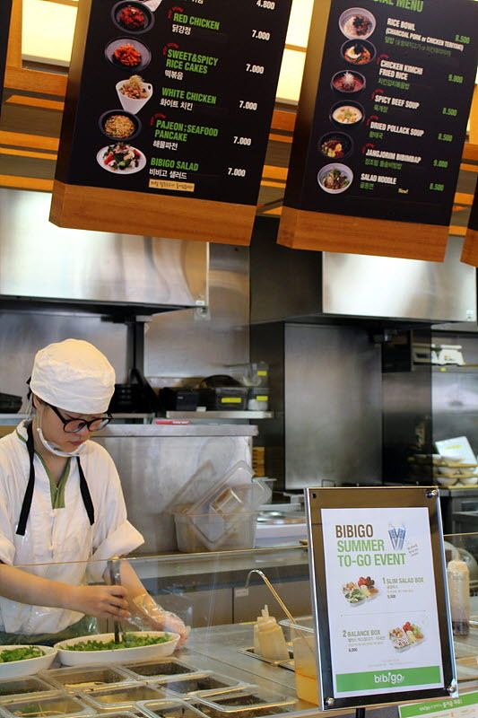 한쪽 면이 시원한 통창으로 꾸며진 비비고 여의도점