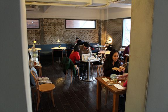 1층에는 훈남 바리스타가 구운 빵과 커피를 내놓는다. 윗층이 만석인 경우 1층에서 대기하기도 한다.