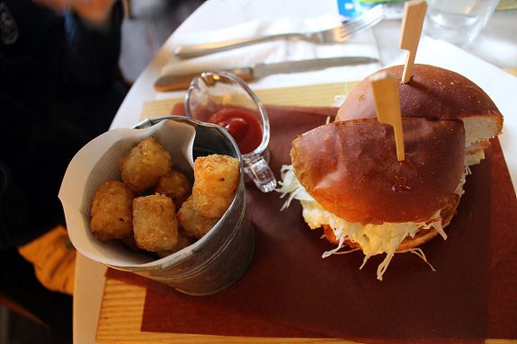 새우 버거는 통 새우를 다진 듯 튼실한 패티가 대박! 세트를 주문하면 프렌치 감자와 음료(청량음료, 커피 중 선택 가능)를 서비스로 내 준다.