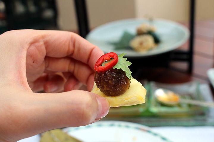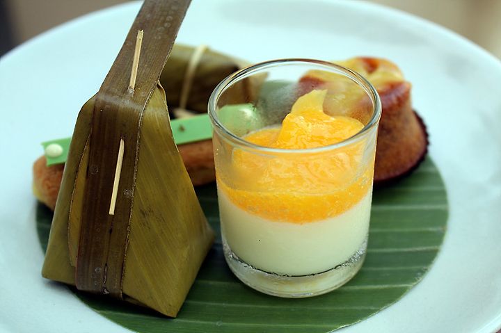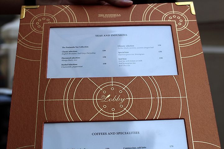 페닌슐라 호텔의 티세트는 3단 접시에 이 호텔의 트레이드 마크인 스콘 2개를 포함해 총 13 피스의 디저트 류가 나온다. 방콕이라는 특성에 맞게 대나무 잎에 싼 절인 생강 같은 것도 있고 디저트 류의 빵과 푸딩, 튀김류 등 메뉴가 무척 다채로웠다.