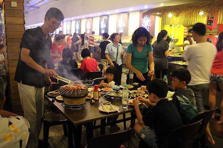 우리가 다녀온 말레이시아 쿠알라룸푸르 반다르 지역의 중국식 무제한 해산물 뷔페인 'Happy City BBQ Steamboat Restaurant'은 저녁 무렵에 문을 열어 새벽까지 영업하는 곳이다. 엄청 시끌벅적한 분위기에서 중국식 요리, 일본식 스시, 스팀봇(치킨스프, 똠양스프 2가지), 해산물 구이, 과일, 디저트까지 완벽 구비해 온 가족의 저녁 외식 장소로 추천할 만하다.