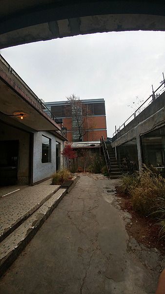 두 동 건물은 영화 세트장을 방불케 할 만큼 날것 그대로다. 두 동 건물 사이엔 아무렇게나 자란 갈대같은 풀이 무성한 중정이 있고, 좁은 계단을 타고 올라가면 나타나는 너른 옥상은 울퉁불퉁한 콘크리트 바닥이 무심하게 노출되어 있다. 옥상에 테라스 공간은 특별한 장식이 없는 루프탑은 한적하고 여유롭다.