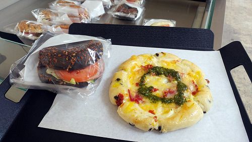 이집의 매력은 뭐니뭐니 해도 베이커리! 맨 오른쪽 총알빵이라고 불리는 저 빵이 가장 인기가 많은 것 같고 베이글 샌드위치도 인기가 높다. 빵은 나오자마자 바로바로 불티나게 팔려나간다. 카페를 찾는 사람 뿐 아니라 빵만 픽업해서 가는 사람들도 많이 보였다.