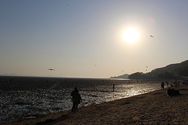 나는 동막해변에 돗자리를 깔고 앉아서 광활한 갯벌과 해질녁의 석양을 바라보았다. 바다와 갯벌을 가르고 다가오는 노을이 무척 아름다운 곳이었다. 주로 동해안쪽으로만 다니다 푸른 바다 대신 광활한 갯벌을 보니 서해안은 이런 맛으로 오나보다 생각이 들었다.