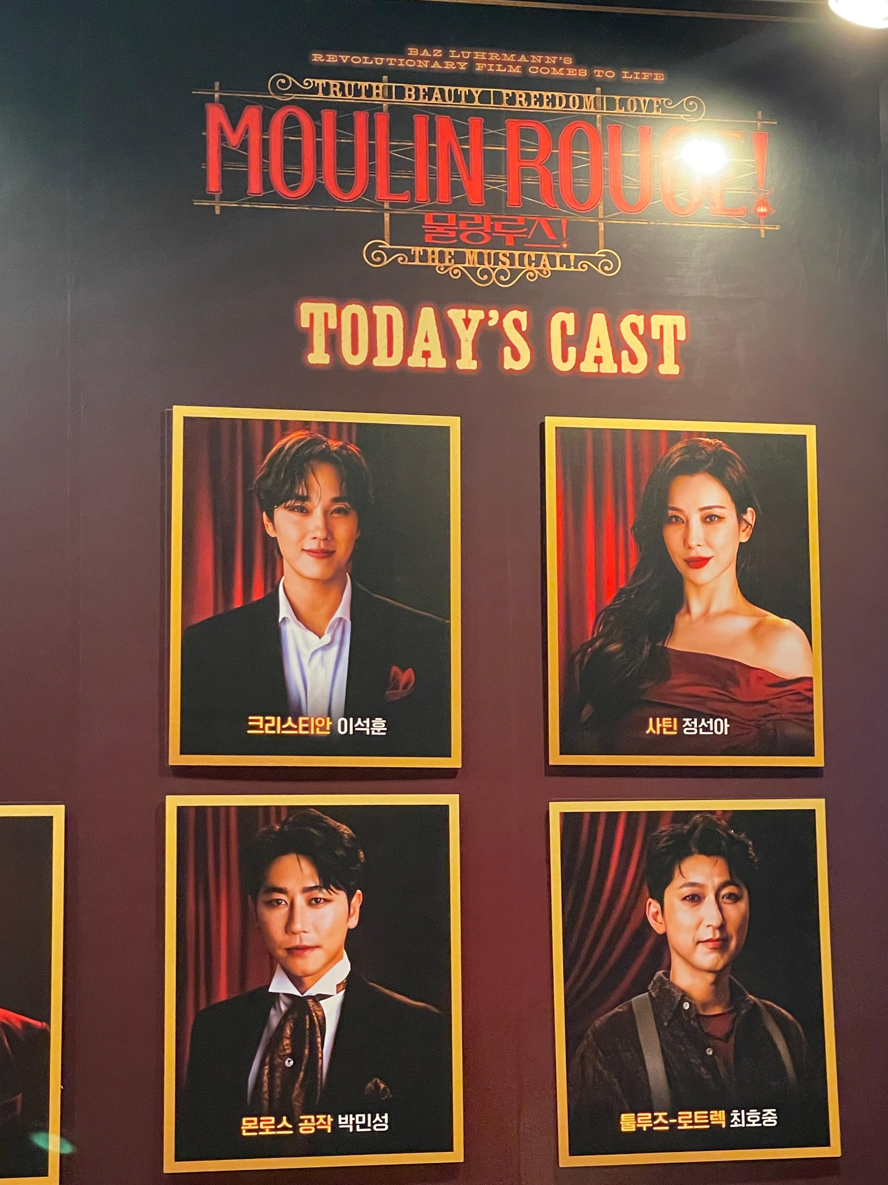 '물랑루즈!'는 2001년 개봉한 배즈 루어먼 감독, 니콜 키드먼과 이완 맥그리거 주연의 뮤지컬 영화(2001년작)를 무대로 옮긴 작품이다. 1899년 프랑스 파리를 배경으로 스타 사틴과 작곡가 크리스티안, 귀족 몬로스 공작의 엇갈린 사랑을 그린다. 2019년 6월 브로드웨이 초연부터 CJ ENM이 글로벌 공동 프로듀싱에 참여했다. 초연 개막과 동시에 제 74회 토니상 최우수 작품상 등 10관왕에 올랐다.