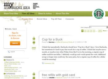 주로 잡다하고 개인적인 얘기로 채워지던 이 사이트도 최근 경기여파로 300개의 점포를 팔고 6,000명을 해고하고 제트기를 팔아치웠다는 살벌한 포스팅이 연일 올라오고 있고 댓글이 무려 270개가 넘는다. 매주 Open Thread Conversation라는 코너에서는 스타벅스의 서비스나 제품에 대한 자유로운 토론이 매우 활발하게 이뤄지고 있음을 볼 수 있다.