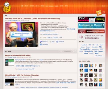 블로그에 특히 동영상이 많은데 동영상을 보려면 MS의 Silver Light를 설치하여야만 시청이 가능한 점이 다소 불편한데 이는 Flash 플레이어의 경쟁 서비스인 Silver Light의 보급을 위한 듯하다. 한국어 OS를 적용하고 있지만 본문은 모두 영어로 제공하고 있다. 국내 MS 개발자들의 네트워크 사이트도 유사하게 개설되기도 했다.