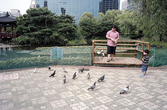 비둘기와 물고기에게 모이도 사서 주고.