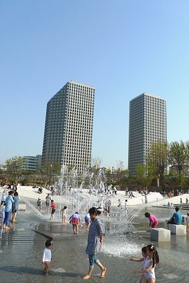 분수대에선 아이들이 물장난에 정신이 없다. 수질이 안좋은데 ㅠ