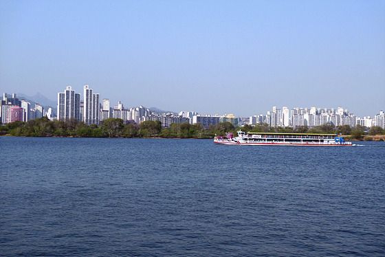 유유히 물살을 가르는 유람선. 타는 것보다 보는 게 더 낫단다~