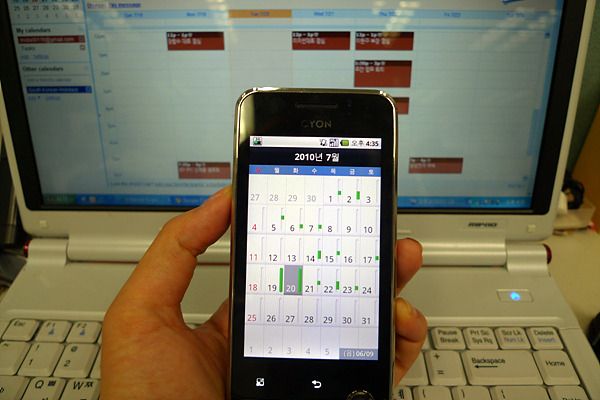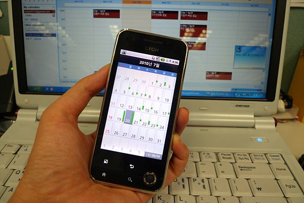 막강 일정관리를 자랑하는 옵큐. 피처폰에서는 사용이 불편해서 잘 쓰지 않던 일정 관리를 한번 해보니까 이게 정말 편리하다. 날이 갈수록 심각해지는 건망증으로는 밀려드는 약속과 회의, 각종 마감을 견뎌낼 수가 없다. 사무실에서는 그나마 탁상 달력에 표기해두는데 외근이나 주말이면 일정이 기억나지 않아서 약속을 잡을 수조차 없는 지경이다. 이런 나에게 구세주 같은 것이 바로 옵큐의 일정관리 기능이다.구글 캘린더와 연동이 되어서 휴대폰 일정이 구글 캘린더로 보내주고, 반대로 구글 캘린더의 일정이 휴대폰으로도 동기화된다. (Google Calendar Sync 다운로드)