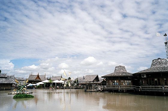 짜오프라야강 가장자리 수로를 따라 도심속 깊은 곳까지 늘어 서 있는 서민들의 생활터전이다. 수상 시장의 물은 언뜻보면 무척 혼탁해보여 그속에서 목욕하고 헤엄치는 사람들을 보면 절로 눈살이 찌뿌려지지만 수질은 2급수로 한강보다도 깨끗하다고 하니 놀라운 일이다.