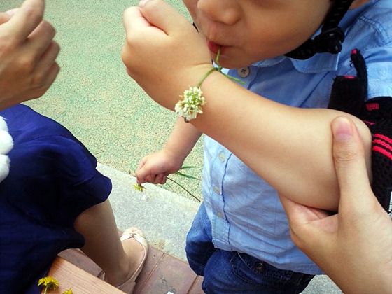 토끼풀 팔찌 만드는 중