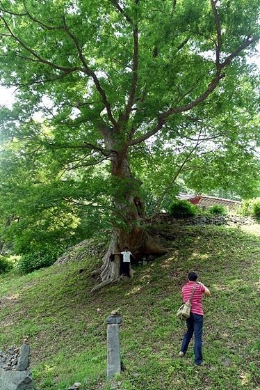 고목 나무 둘레를 재보자며 나선 로묘왕자님과 이를 촬영 중인 송군