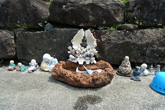 샘터에 놓여진 작은 동자승 인형이 귀엽다.