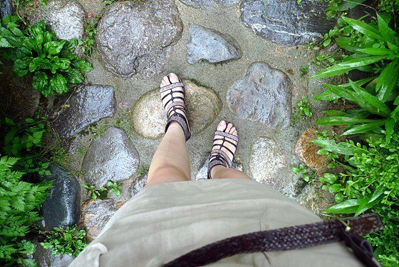 펜션 옆 불어난 계곡물에 발도 잠시 담궈보고.